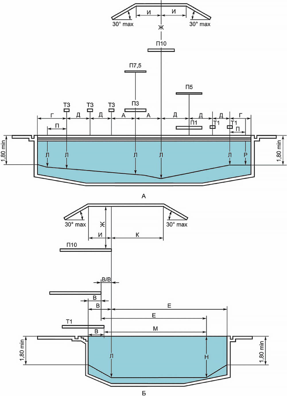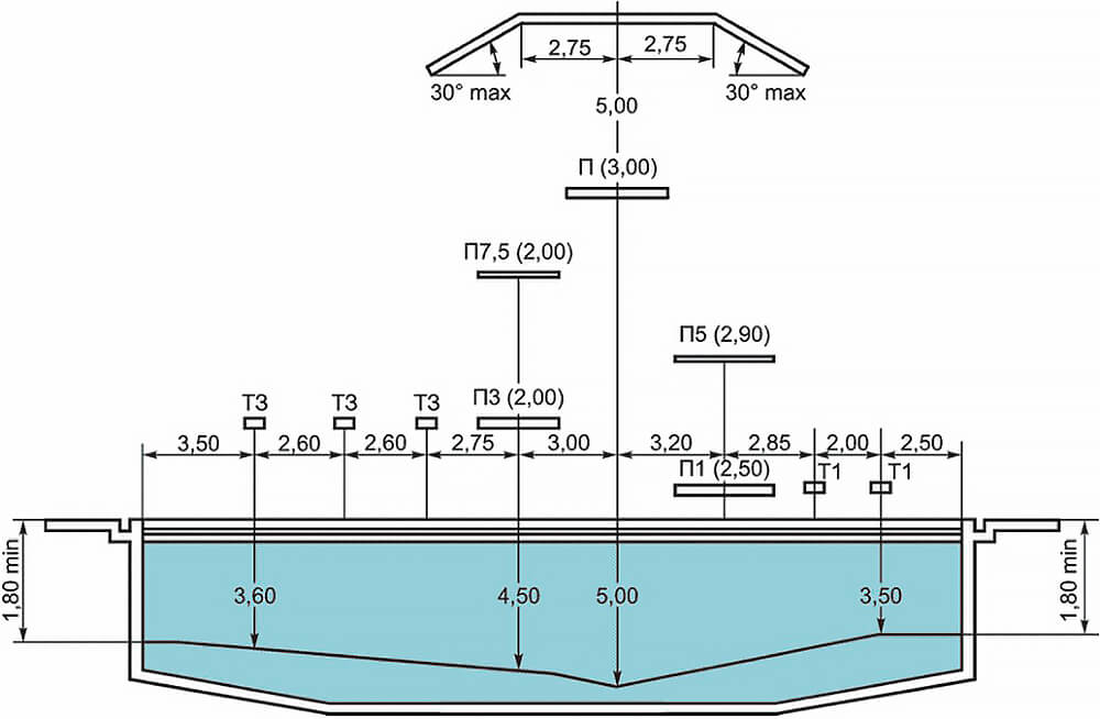 7.2 СООУ должна обеспечивать безопасность по всей поверхности и толщине воды ванны бассейна. При наличии в бассейне для плавания нескольких ванн используют единую СООУ.