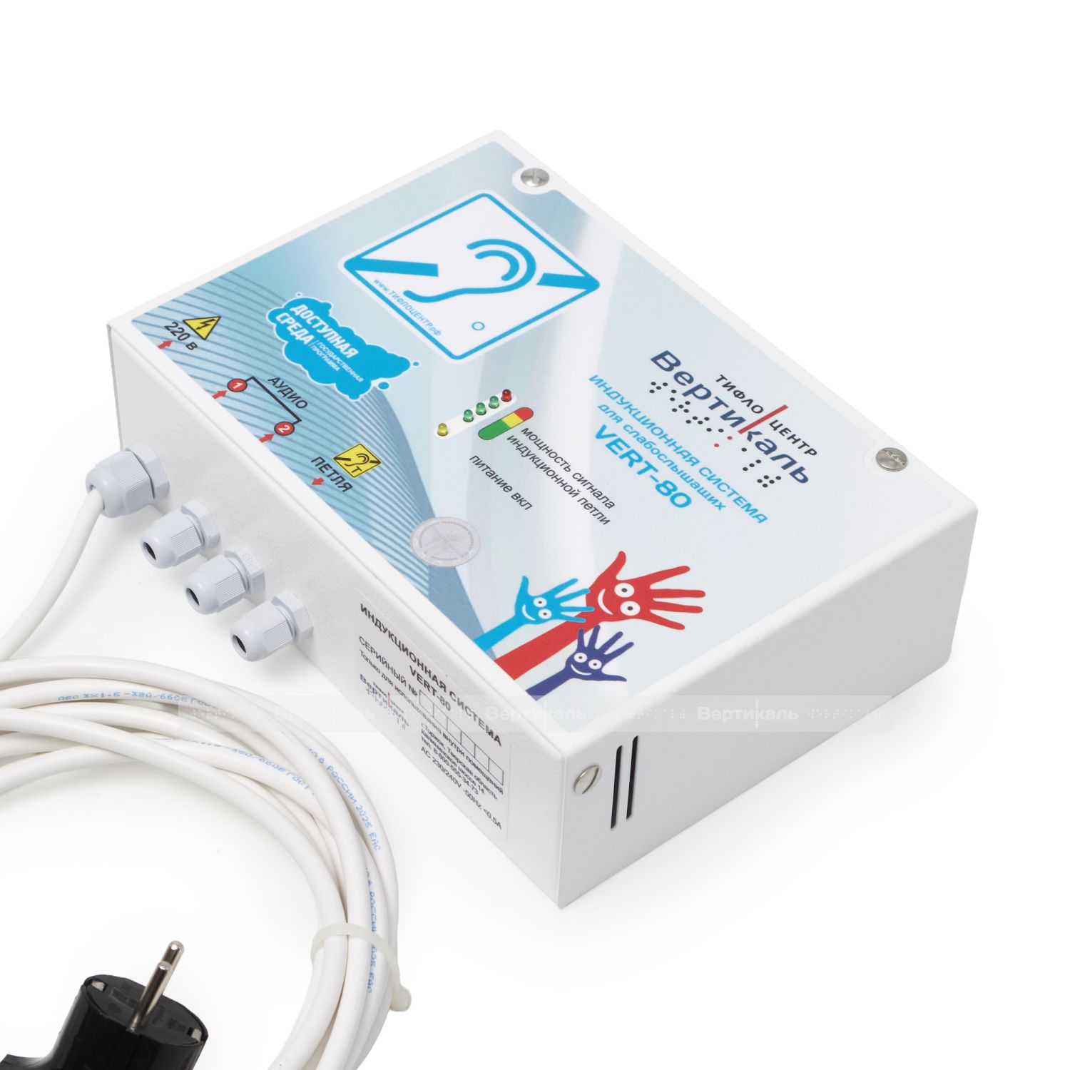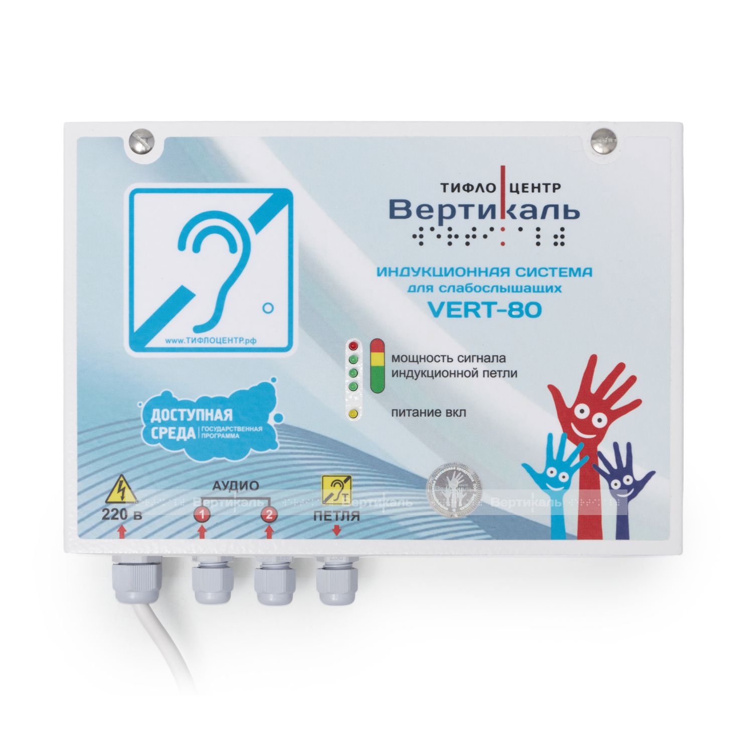 Стационарная индукционная система VERT-80 предназначена для использования в помещениях площадью до 80 м², усиливая восприятие информации людьми с нарушениями по слуху (использующих слуховые аппараты) в ограниченном пространстве и при большом скоплении людей, а также наличии посторонних звуков или преграды между собеседниками.