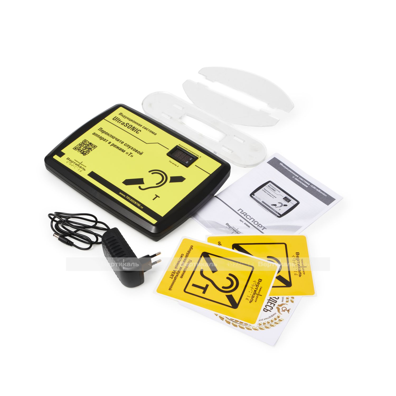 Индукционная петля для слабослышащих "UltraSonic" служит для усиления звука для слабослышащих людей при повышенном уровне постороннего шума или при наличии преграды между собеседниками. Применяется в общественных местах, в зонах обслуживания населения (кассах, зонах получения услуг или информации). Преимуществом данной системы является встроенный электромагнитный измеритель в низкочастотном диапазоне, который показывает эффективность работы индукционного контура, выводя показатели на специальный светодиодный дисплей. Устройство передает чистый усиленный звук на слуховой аппарат (в режиме "Т"), несмотря на большое скопление людей, посторонние шумы и преграды между посетителем и оператором системы.