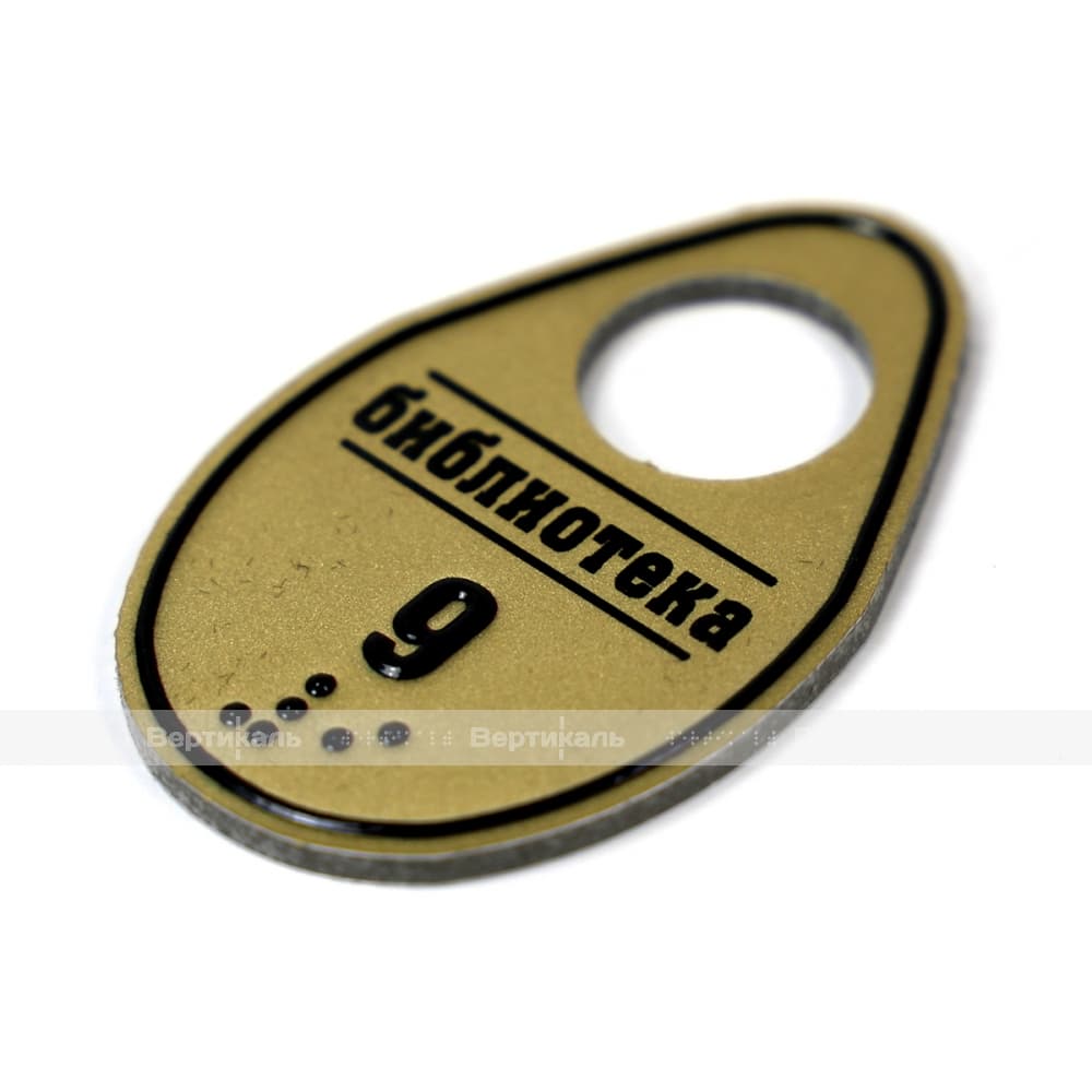 Гардеробные номерки криволинейной формы тактильные односторонние на основе алюминиевой композитной панели 3мм с защитным покрытием 70 х 45 мм