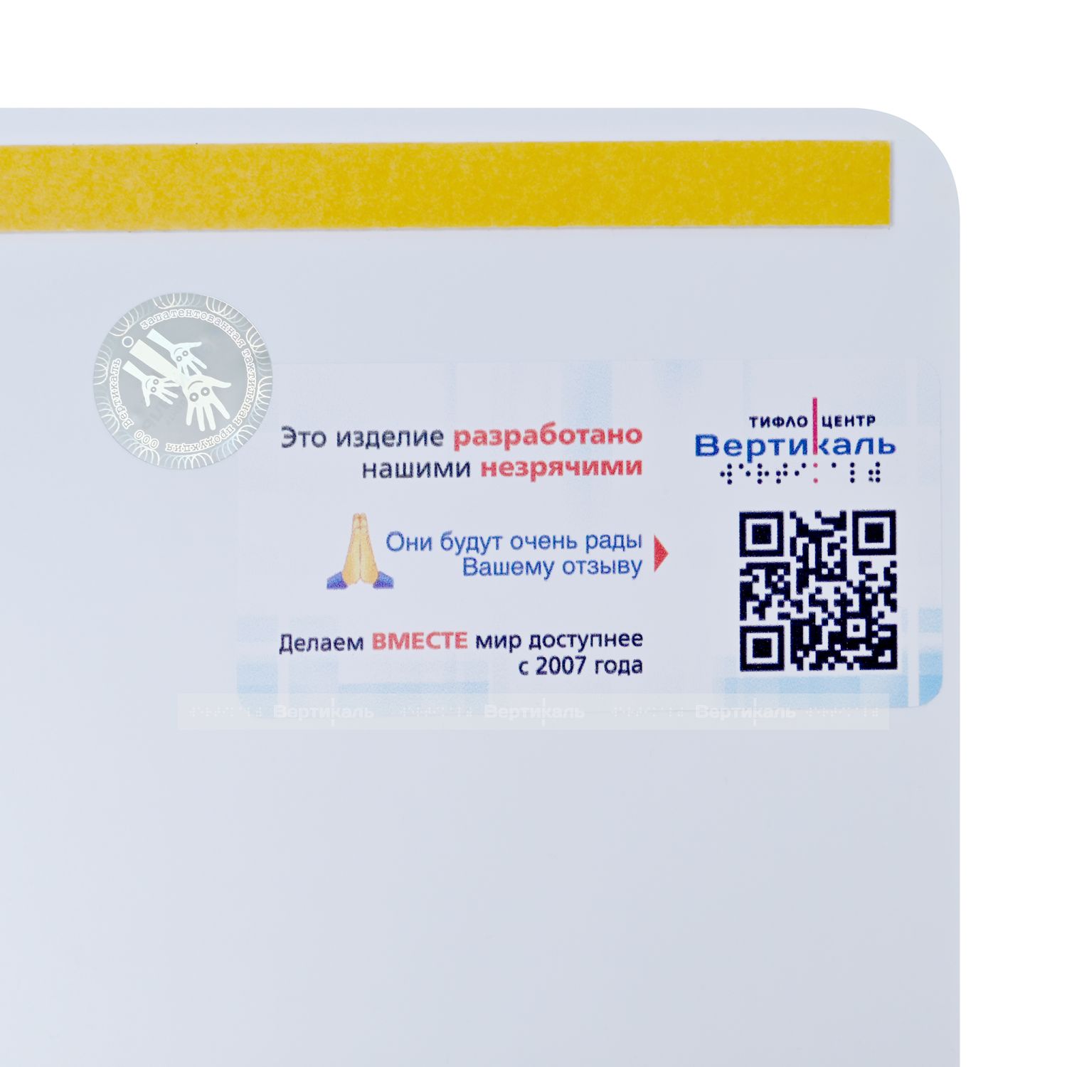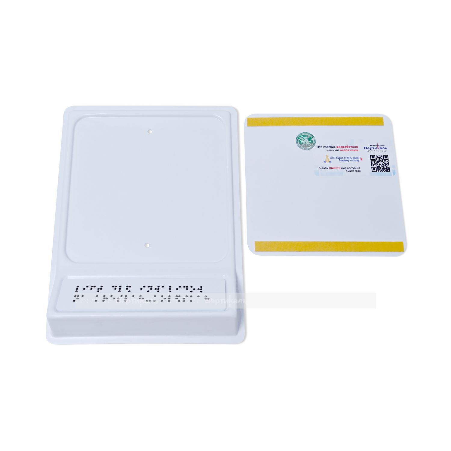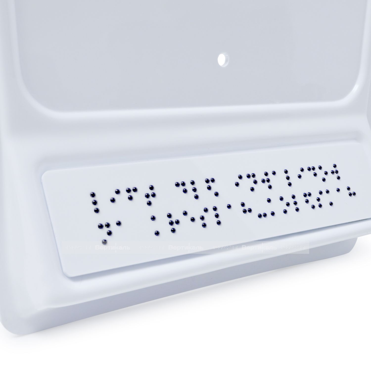 Тактильный указатель обозначающий лифт для инвалидов на креслах-колясках. Обладает тактильным эффектом для восприятия незрячими и слабовидящими людьми. Информация продублирована по системе Брайля на специальной наклонной площадке, что позволяет считывать информацию незрячему человеку значительно быстрее.