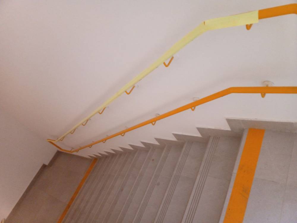 Поручень направляющий с нижними кронштейнами предназначен для обеспечения информирования при движении, как для тотально слепого человека, так и для слабовидящего человека, также для колясочника. Рекомендован к применению ВОС, гос. программой "Доступная среда". Поручни антибактериальные изготавливаются со специальным нейлоновым покрытием. Бактерии на таких поверхностях погибают в течении 24 часов.
