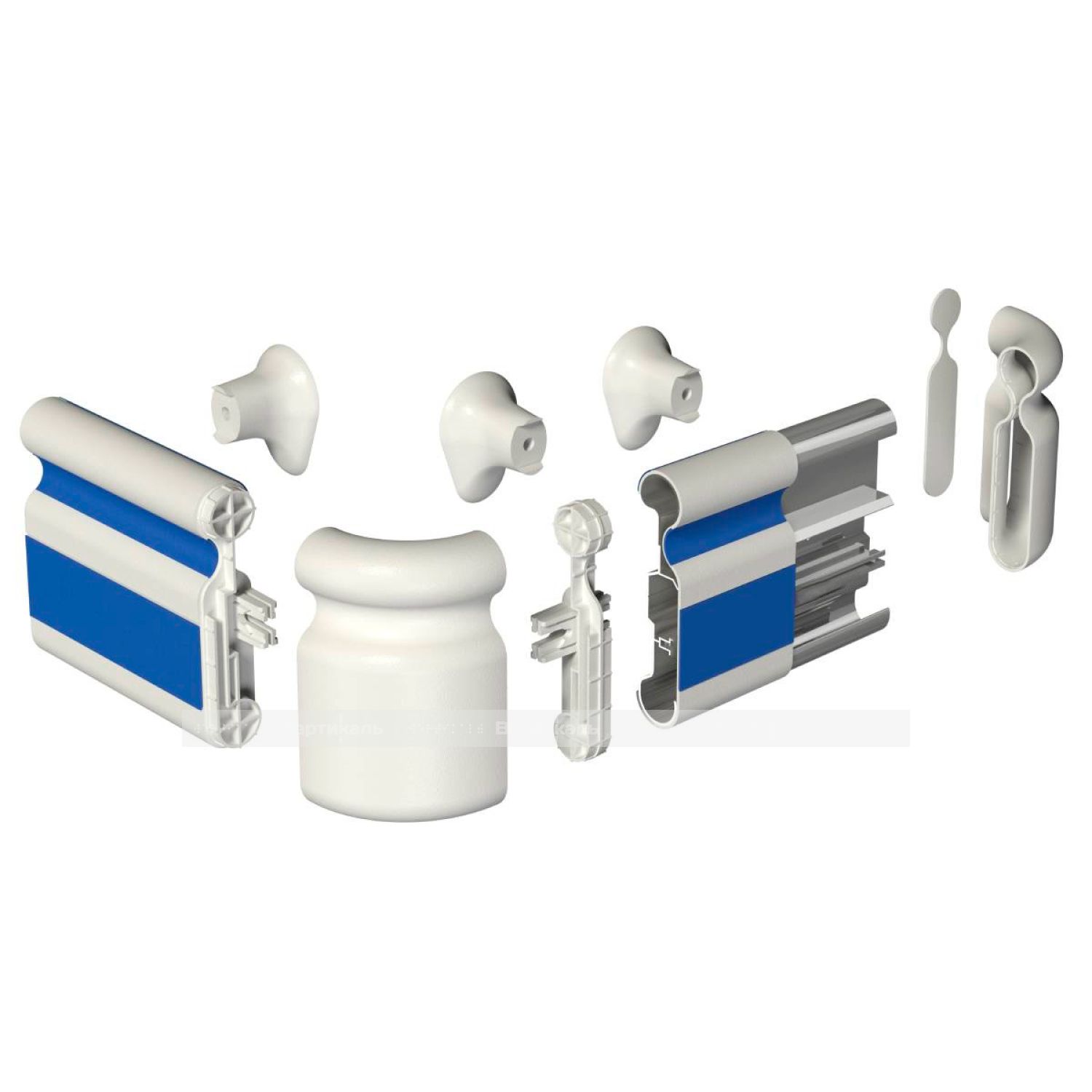 - С целью соответствия визуального облика изделия поручень изготовлен в двухцветном, контрастном исполнении (параллельные, чередующие полосы синего и белого цвета).