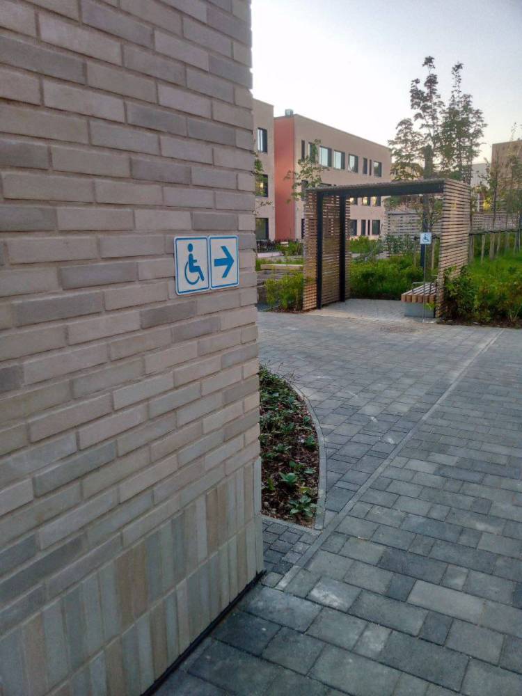 Указатель — обозначение доступности объекта для инвалидов на креслах-колясках. Обладает тактильным эффектом. Доступен для восприятия незрячими и слабовидящими людьми.