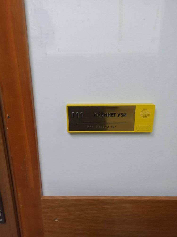 В нашем центре у дверей кабинетов закрепили вот такие таблички. На них можно записать звук - очень удобно.