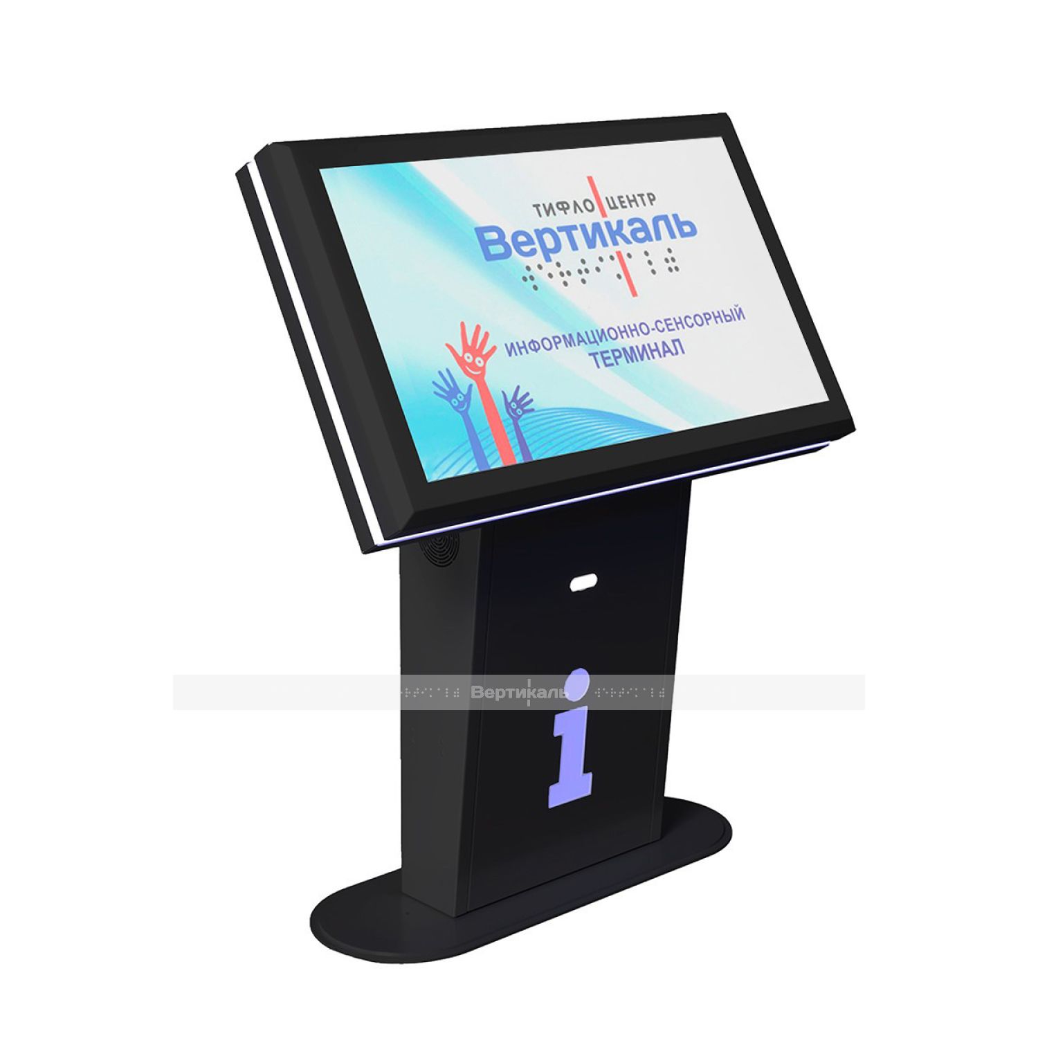 Сенсорный информационный терминал "INFO-VERT-2(43)D" специально разработан для использования его в качестве информационного устройства лицам с ограничениями по здоровью (слабовидящими, в коляске). Антивандальный, стальной корпус с контрастной контурной подсветкой, наклонная сенсорная LED-панель 43, предустановленное программное обеспечение с функцией чтения с экрана и адаптивным меню для инвалида. Дополнительно устанавливаются функции для слабослышащих.