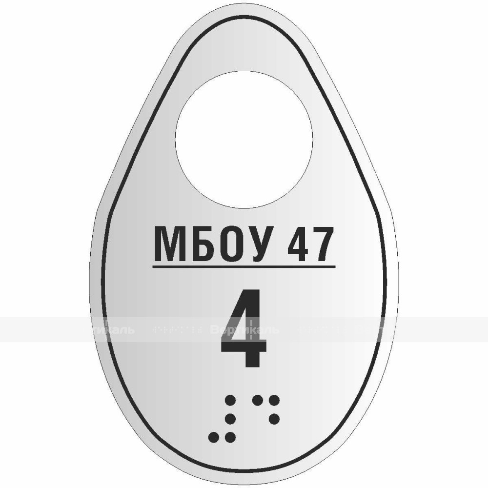 Гардеробные номерки тактильные криволинейной формы односторонние на основе ABS 2 мм с защитным покрытием "под серебро" 70х60 мм