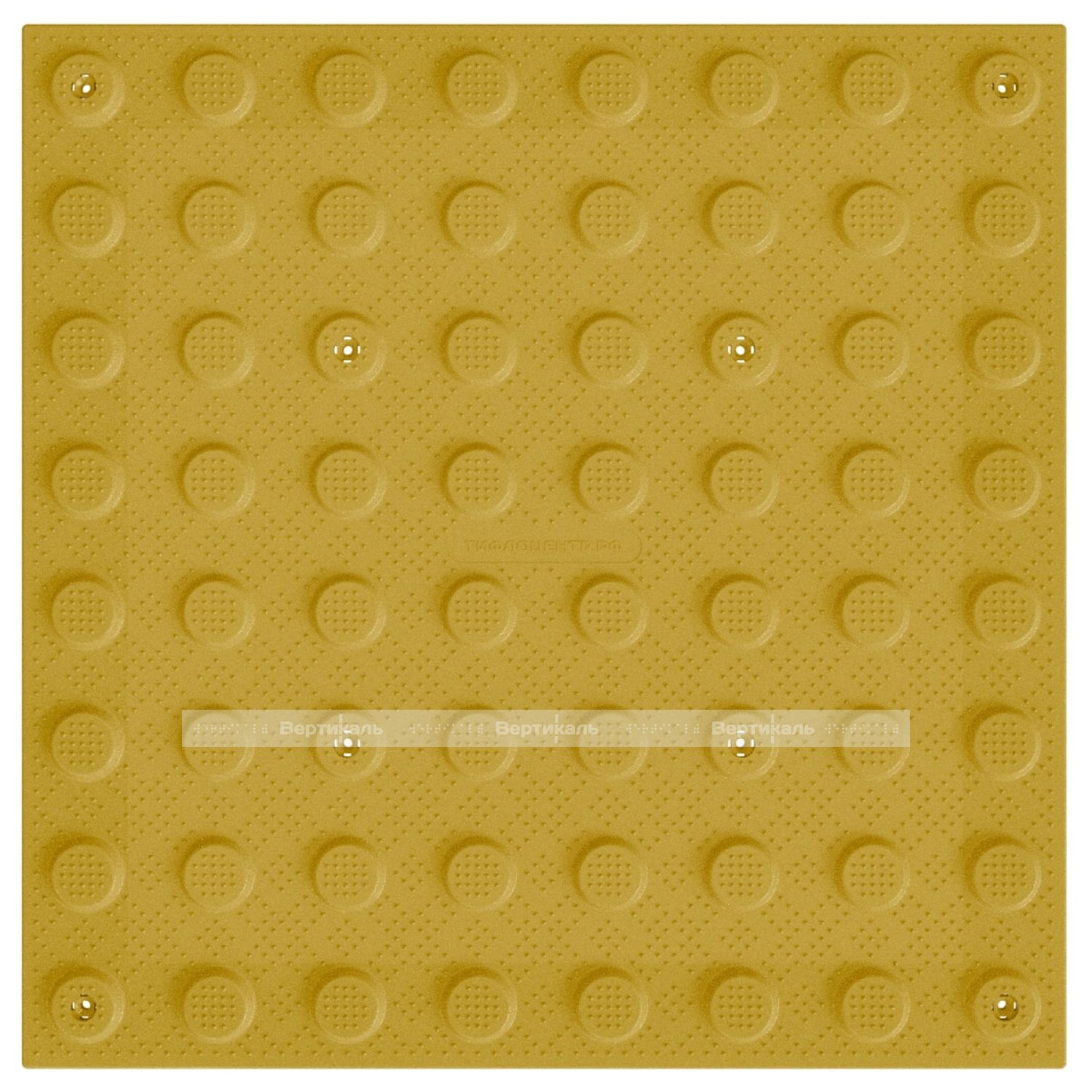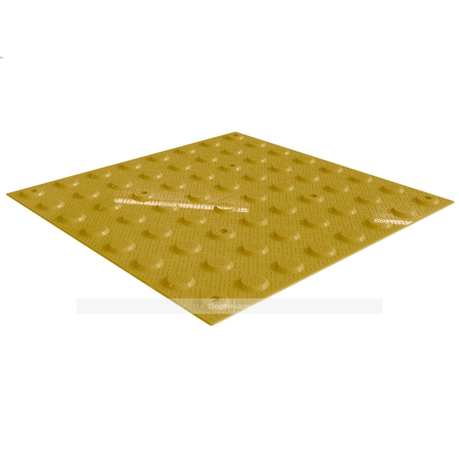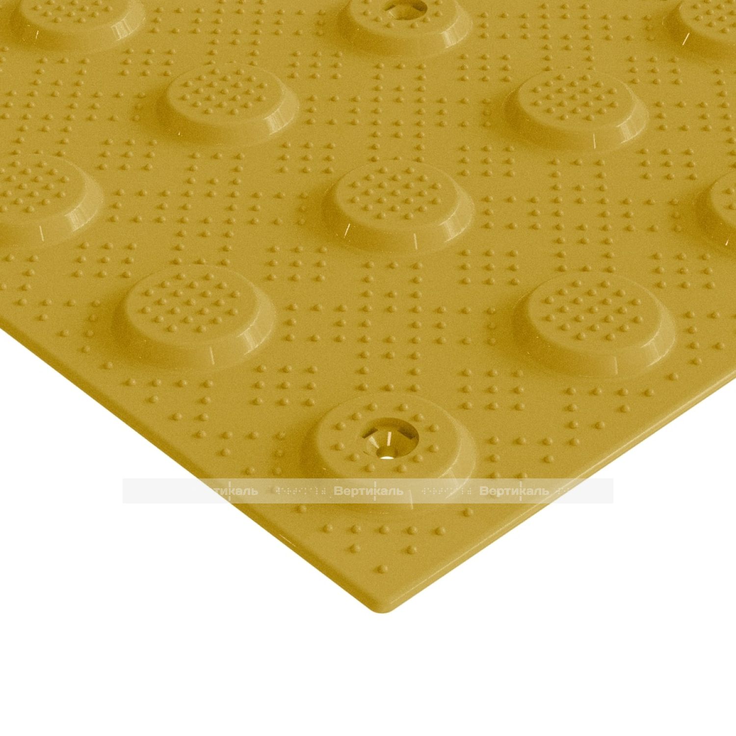 Не допускается применение изделий с более крупными ячейками, так как это значительно увеличит расход клеящего вещества. Для обеспечения контраста с подстилающей поверхностью, а также для обеспечения оптимальных условий восприятия цвета слабовидящим человеком, тактильная плитка имеет жёлтый цвет поверхности. Плитка предназначена для монтажа при помощи клея на уже имеющееся напольное покрытие. Специалисты компании "Вертикаль" рекомендуют использовать специальный клей FIXVERT. Тактильная плитка от компании "Вертикаль" рекомендована к применению ВОС и гос. программой "Доступная среда".