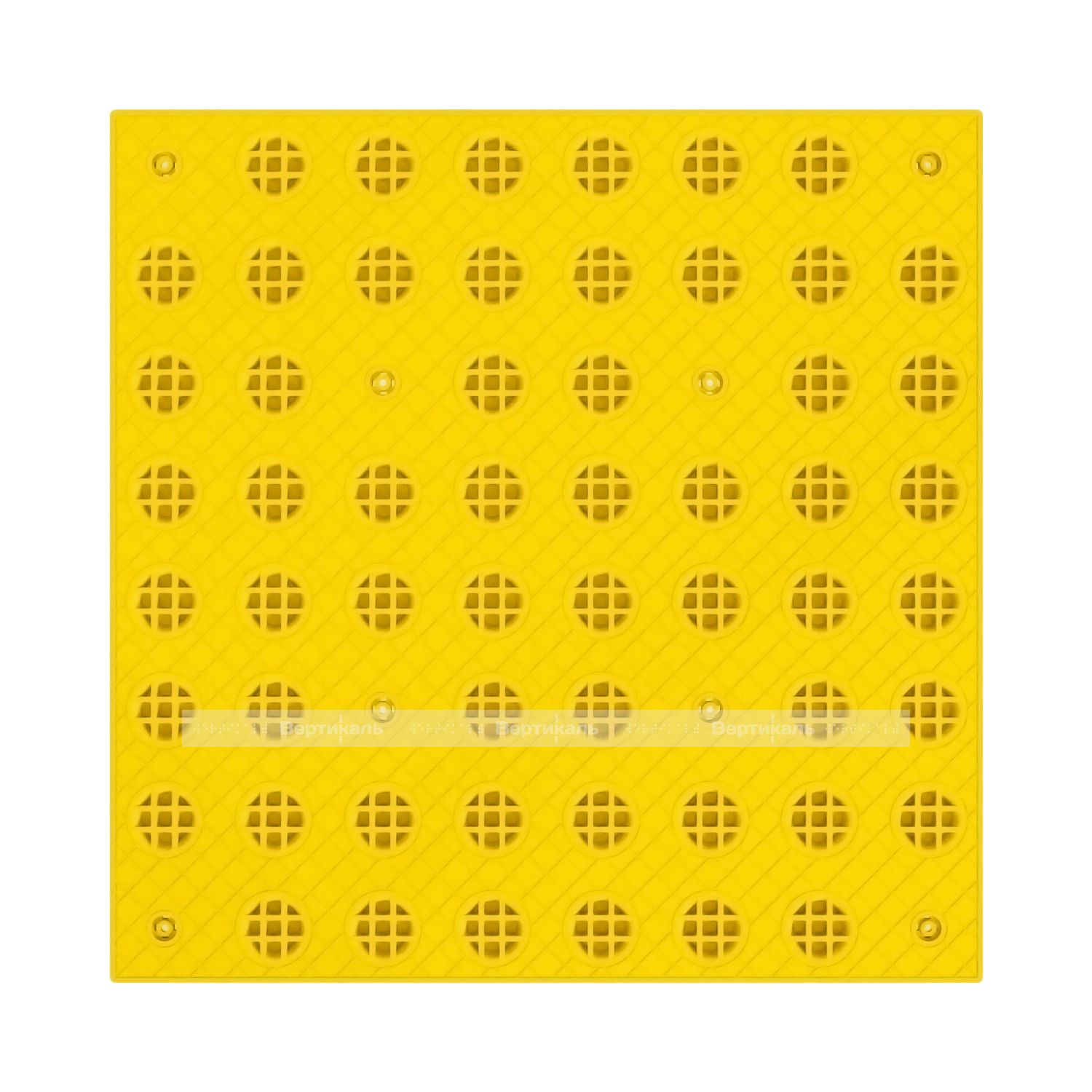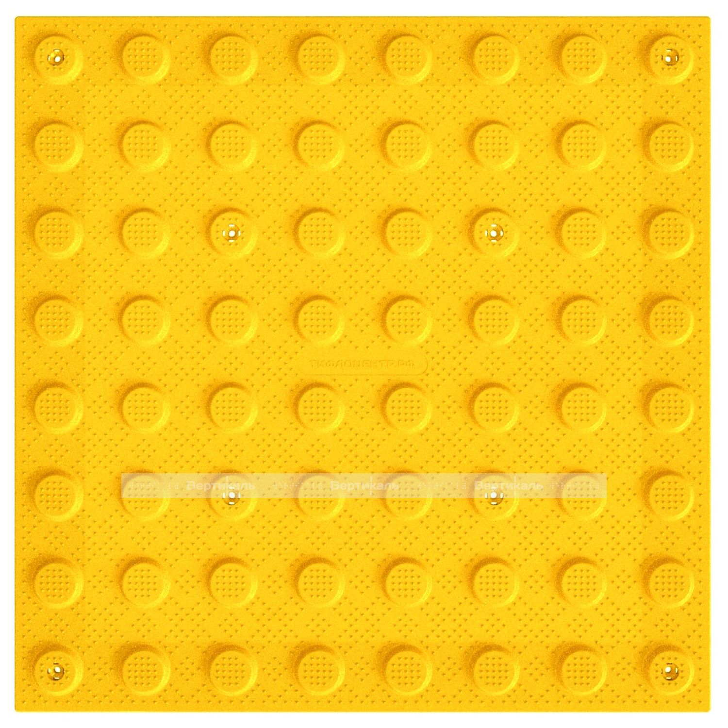 Плитка тактильная (преодолимое препятствие, поле внимания, конусы линейные) противоскользящая, 500х500х5, ПУ, желтый