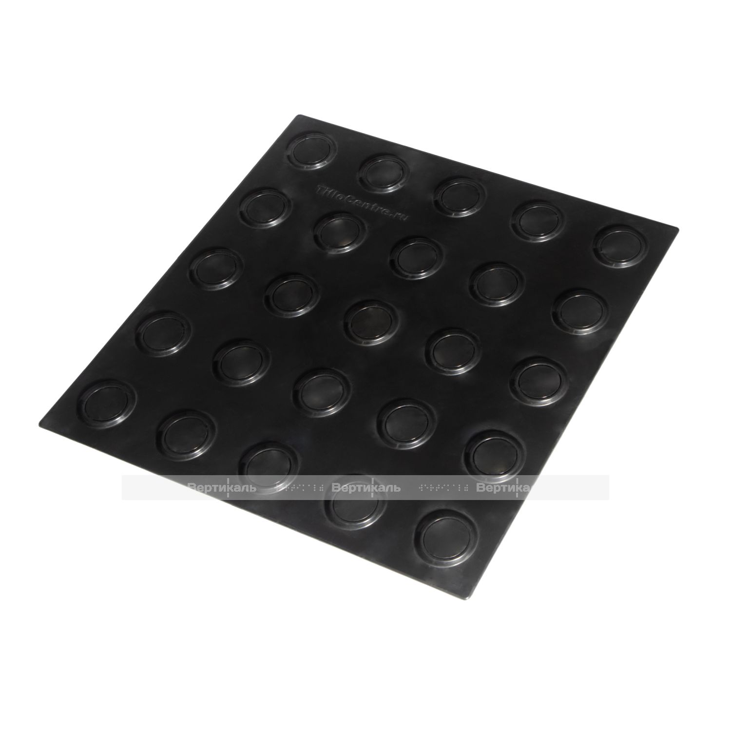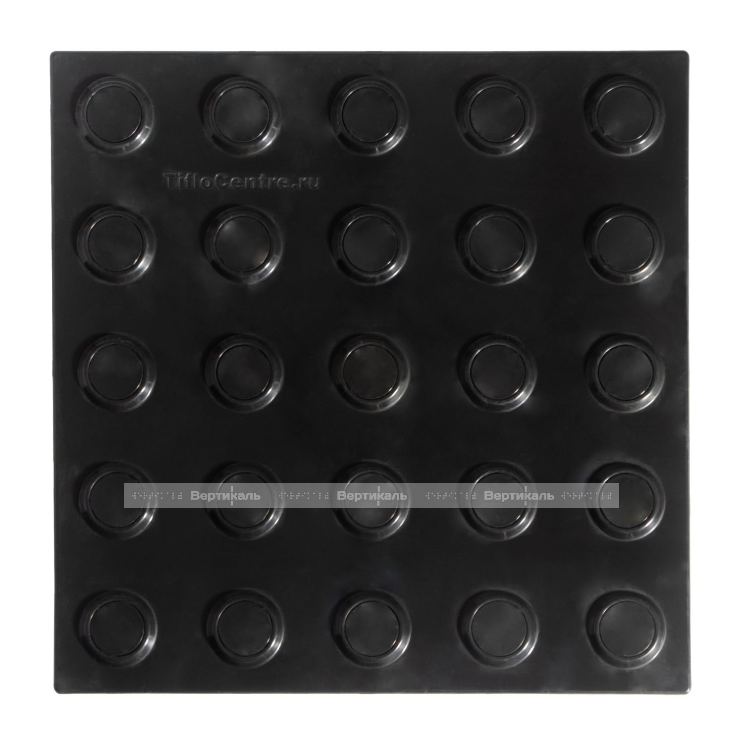 Плитка тактильная контрастная, со сменными гладкими вставками (преодолимое препятствие, поле внимания, конусы линейные), 300х300х6, PU/PL, черный/черный