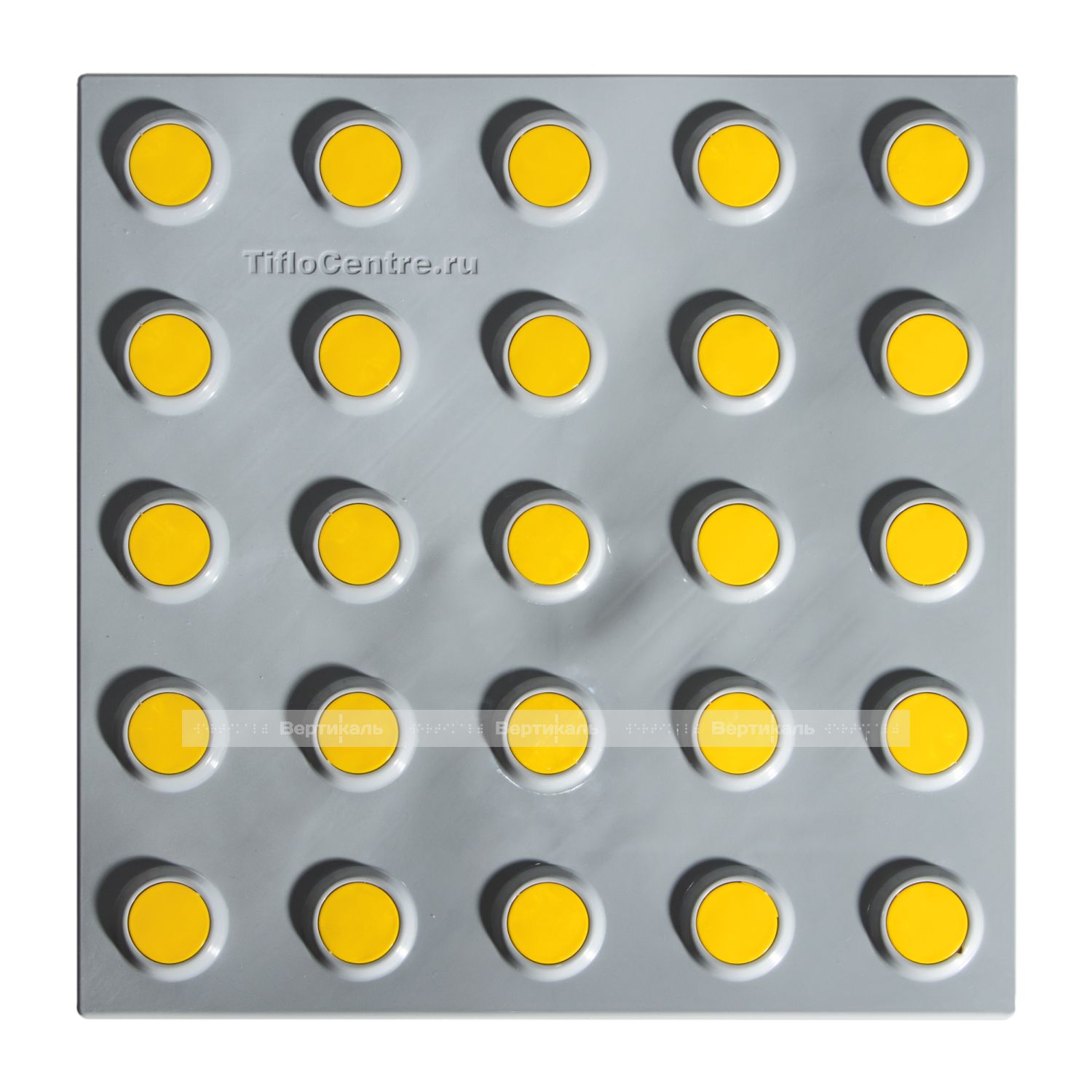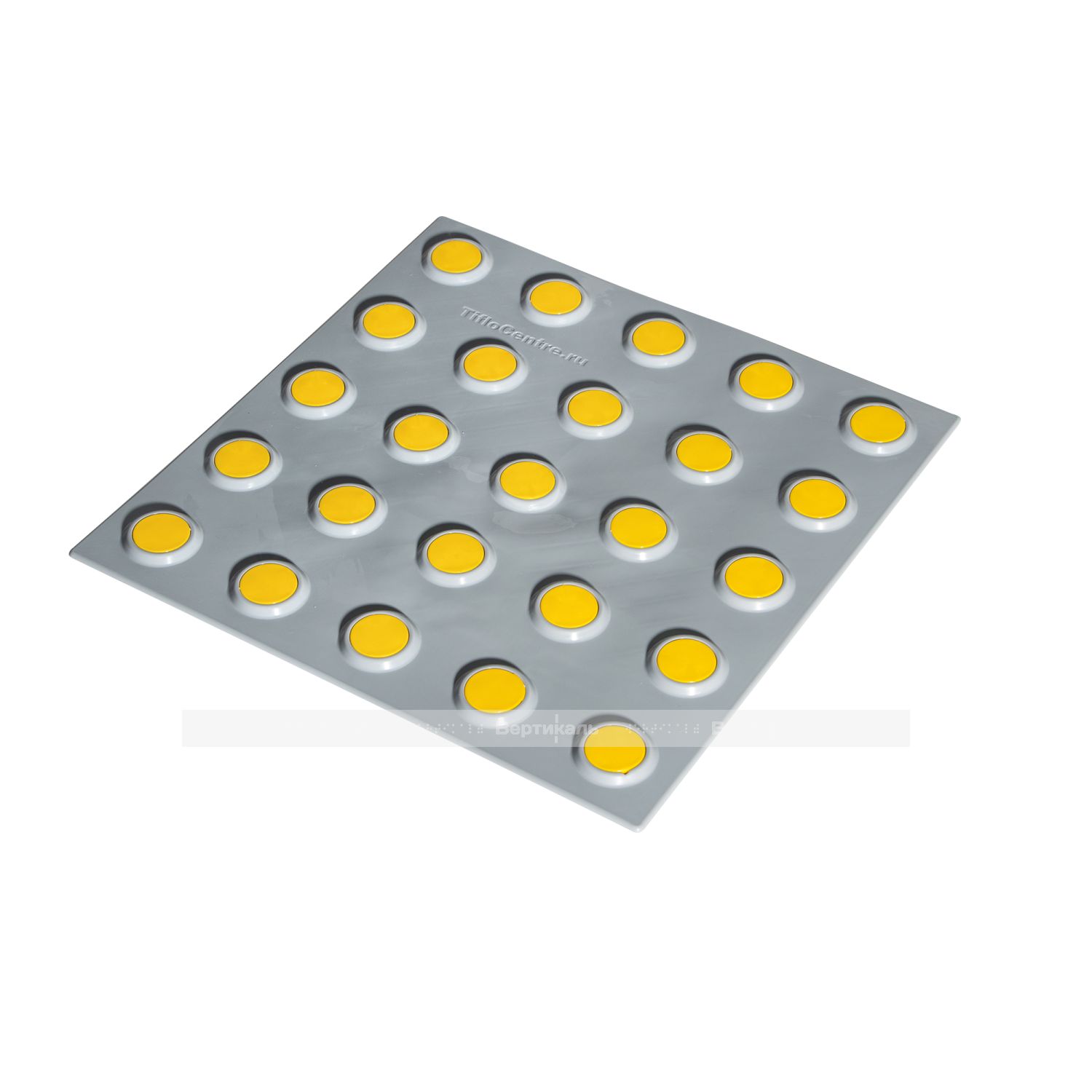 Плитка тактильная контрастная, со сменными гладкими вставками (преодолимое препятствие, поле внимания, конусы линейные), 300х300х6, PU/PL, с/ж, самоклей