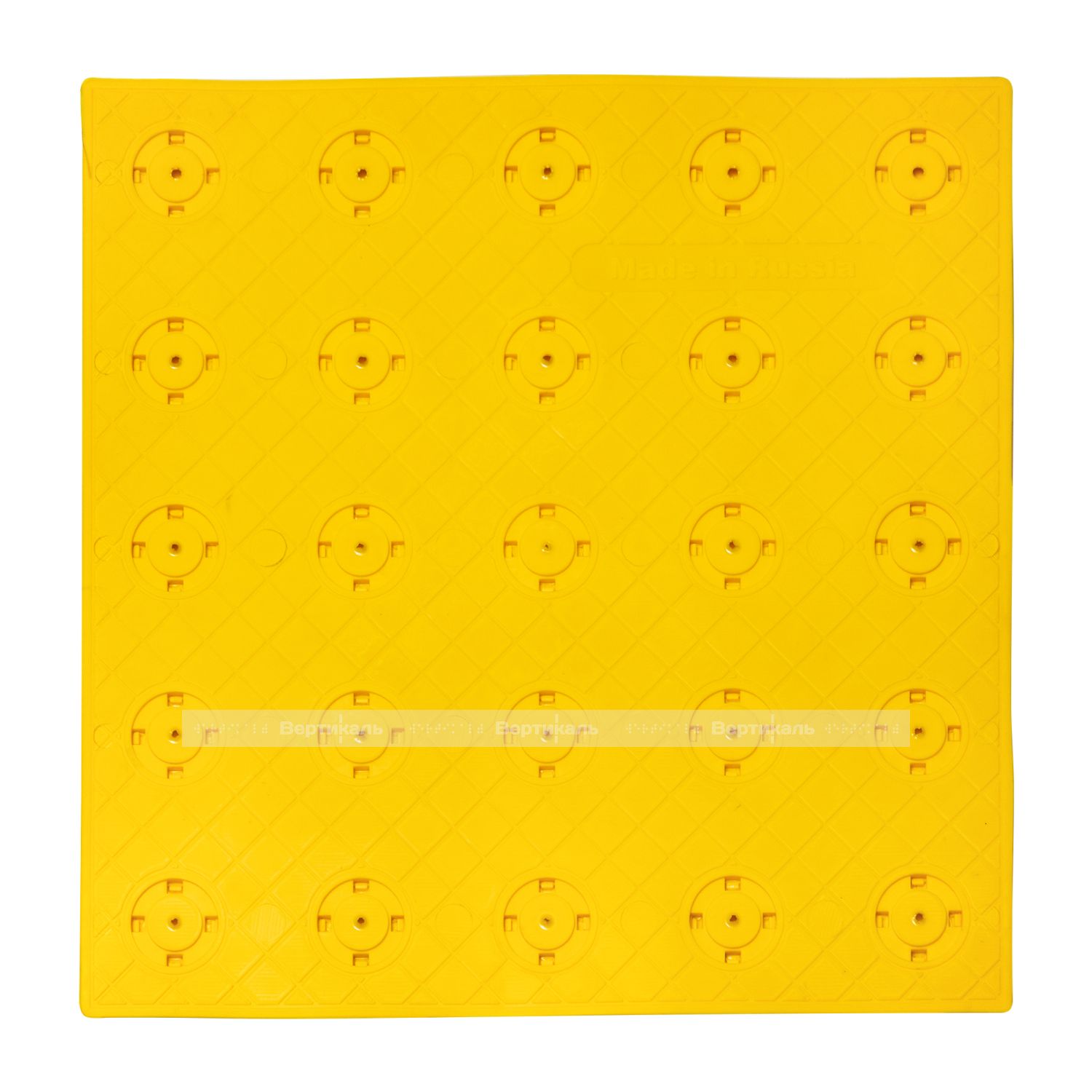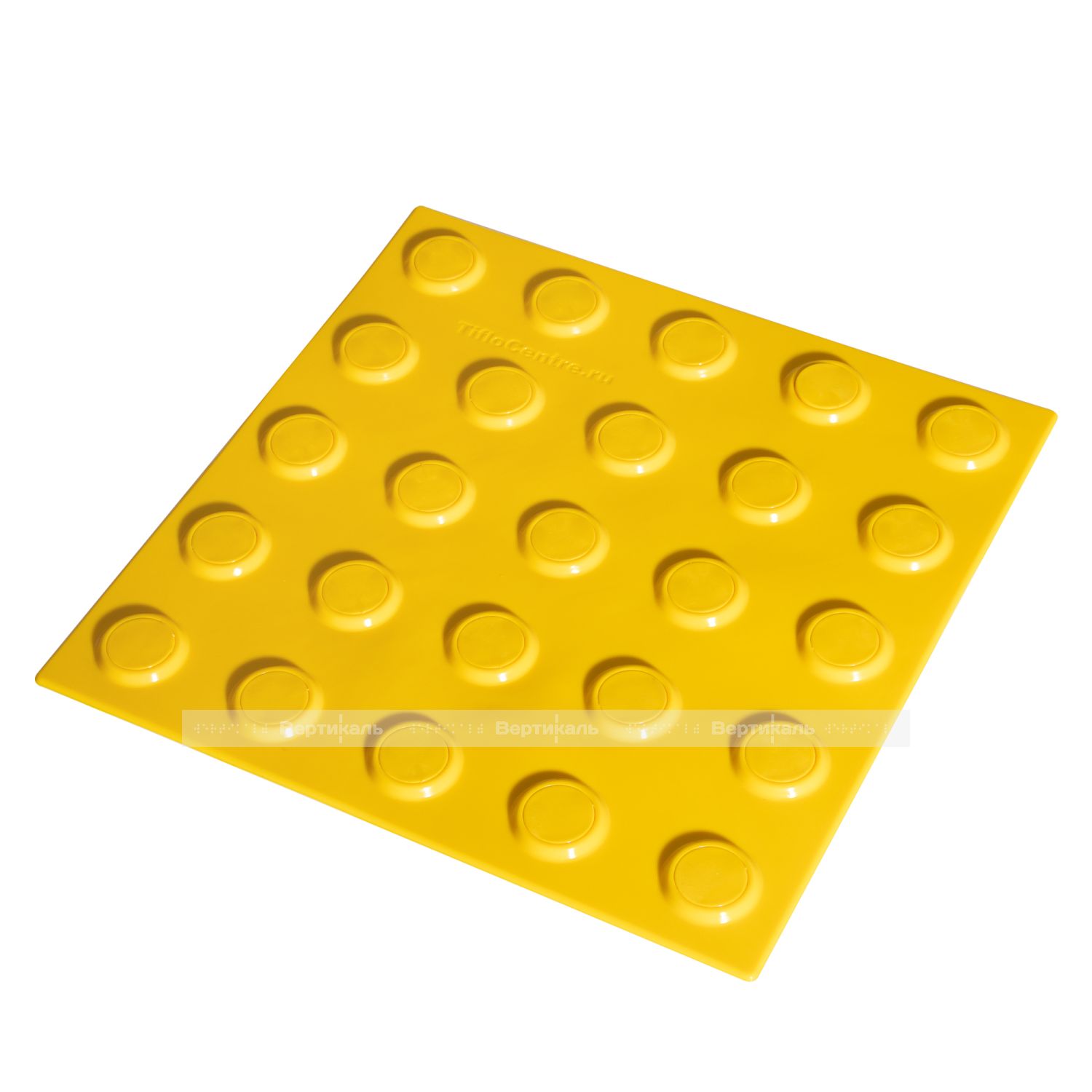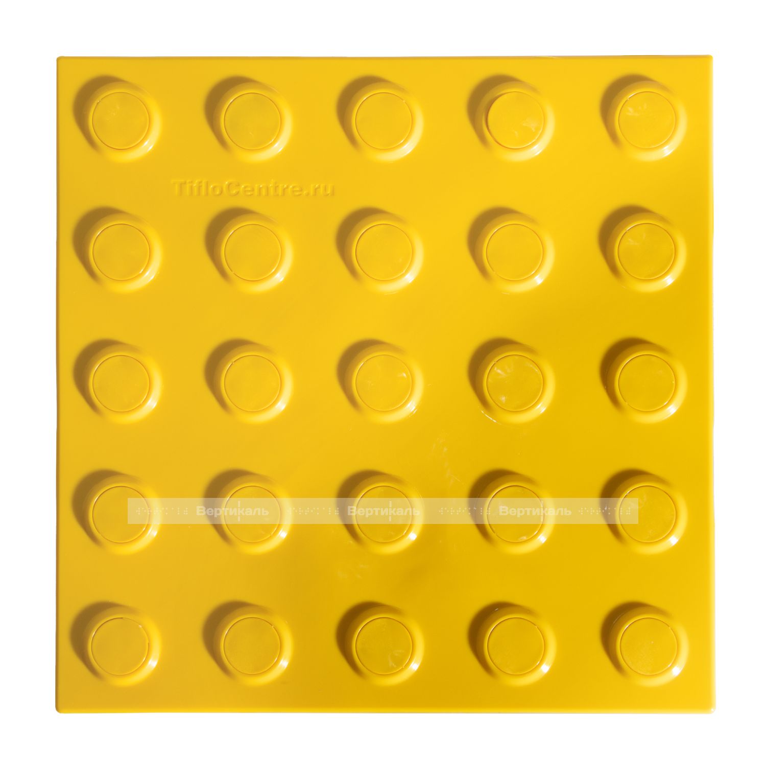 Плитка тактильная контрастная, со сменными гладкими вставками (преодолимое препятствие, поле внимания, конусы линейные), 300х300х6, PU/PL, желтый/желтый