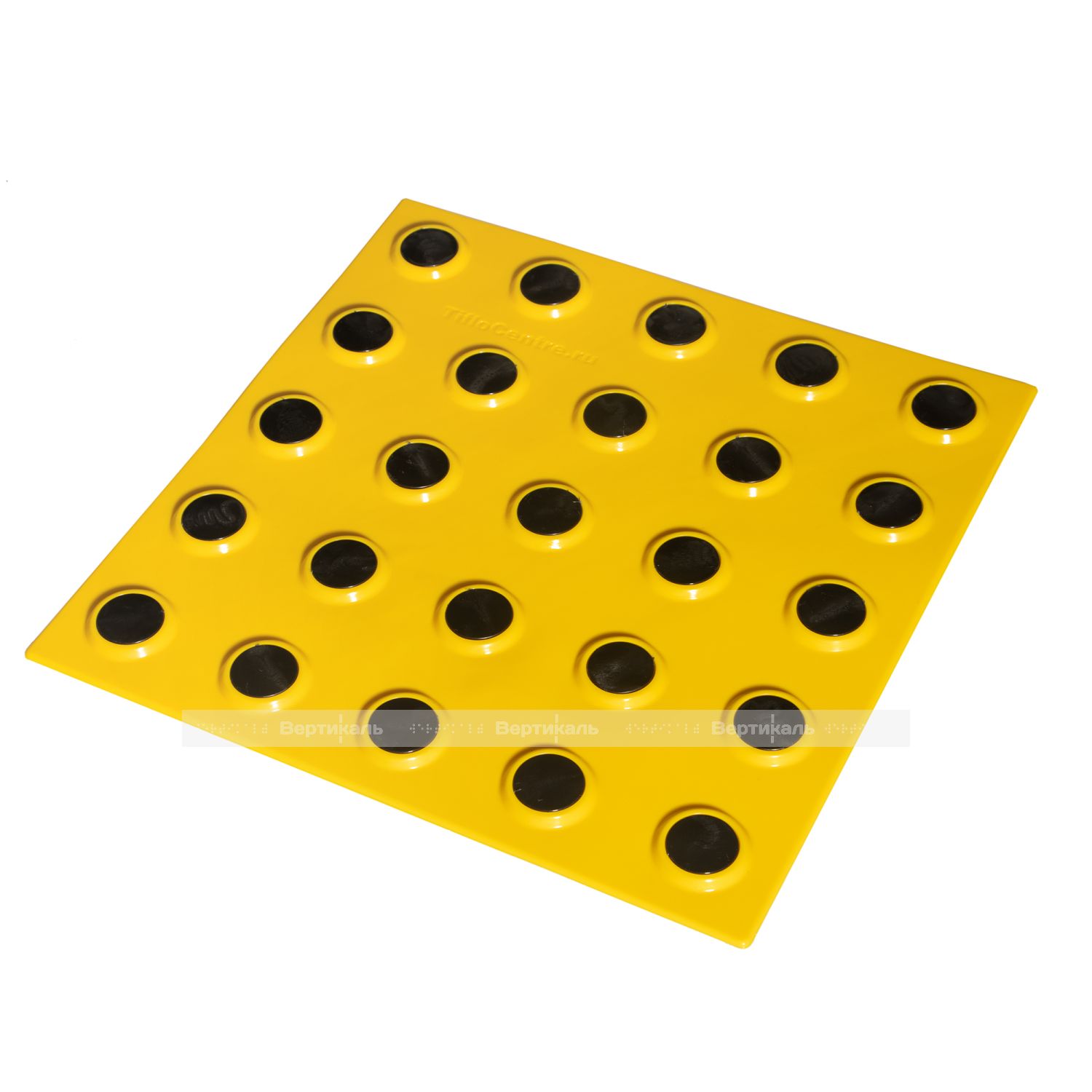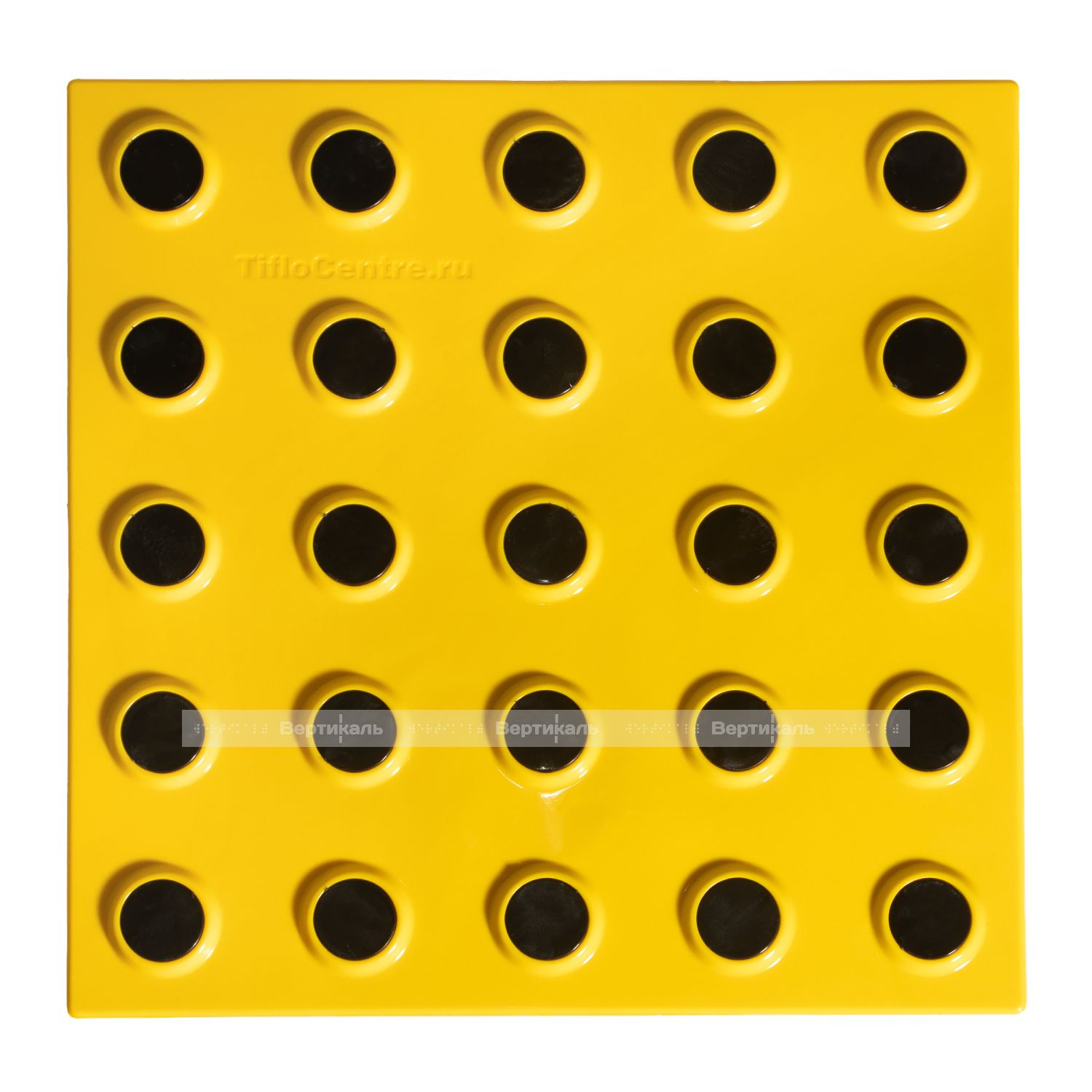 Плитка тактильная контрастная, со сменными гладкими вставками (преодолимое препятствие, поле внимания, конусы линейные), 300х300х6, PU/PL, ж/ч, самоклей