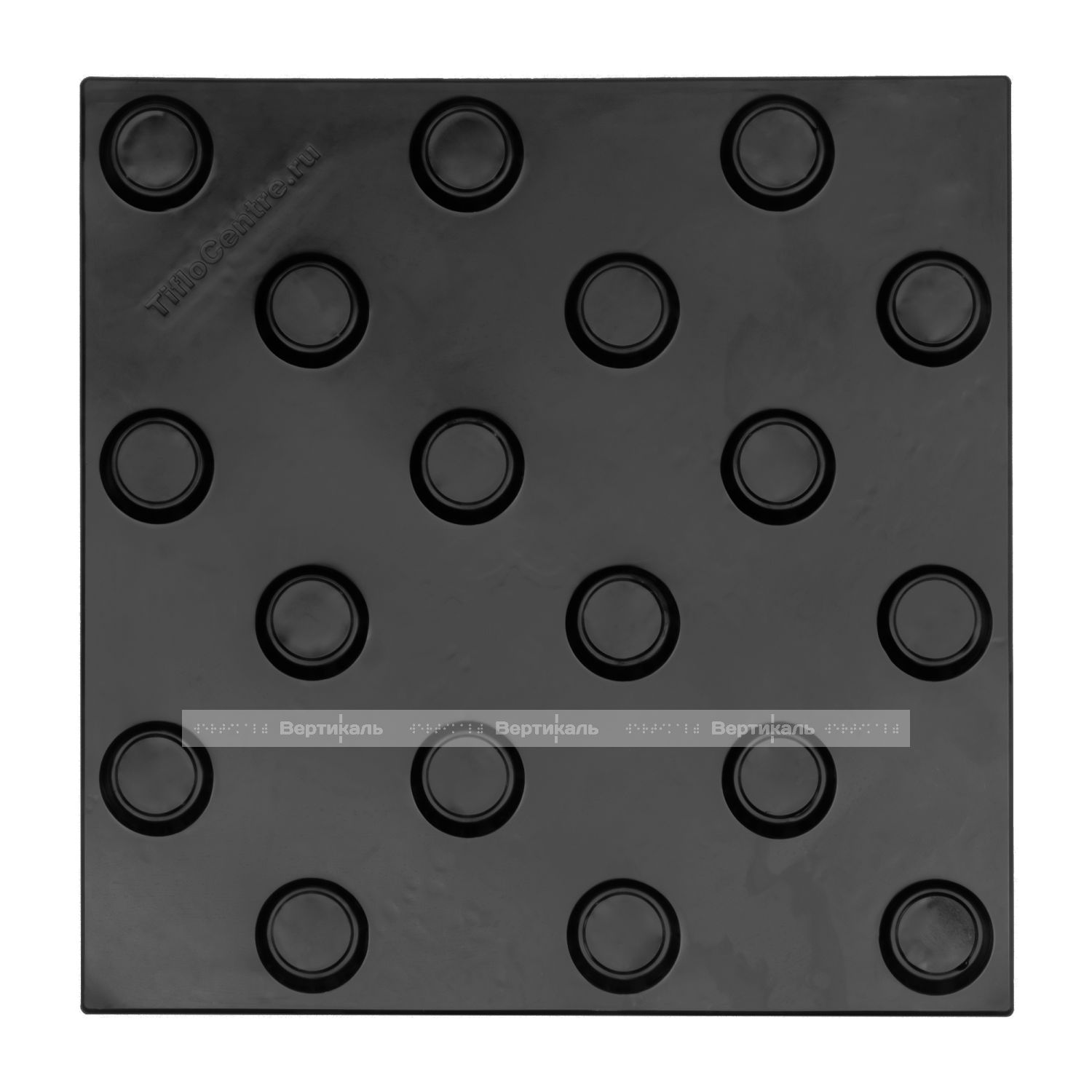 Плитка тактильная контрастная, со сменными гладкими вставками (непреодолимое препятствие, конусы шахматные), 300х300х6, PU/PL, черный/черный