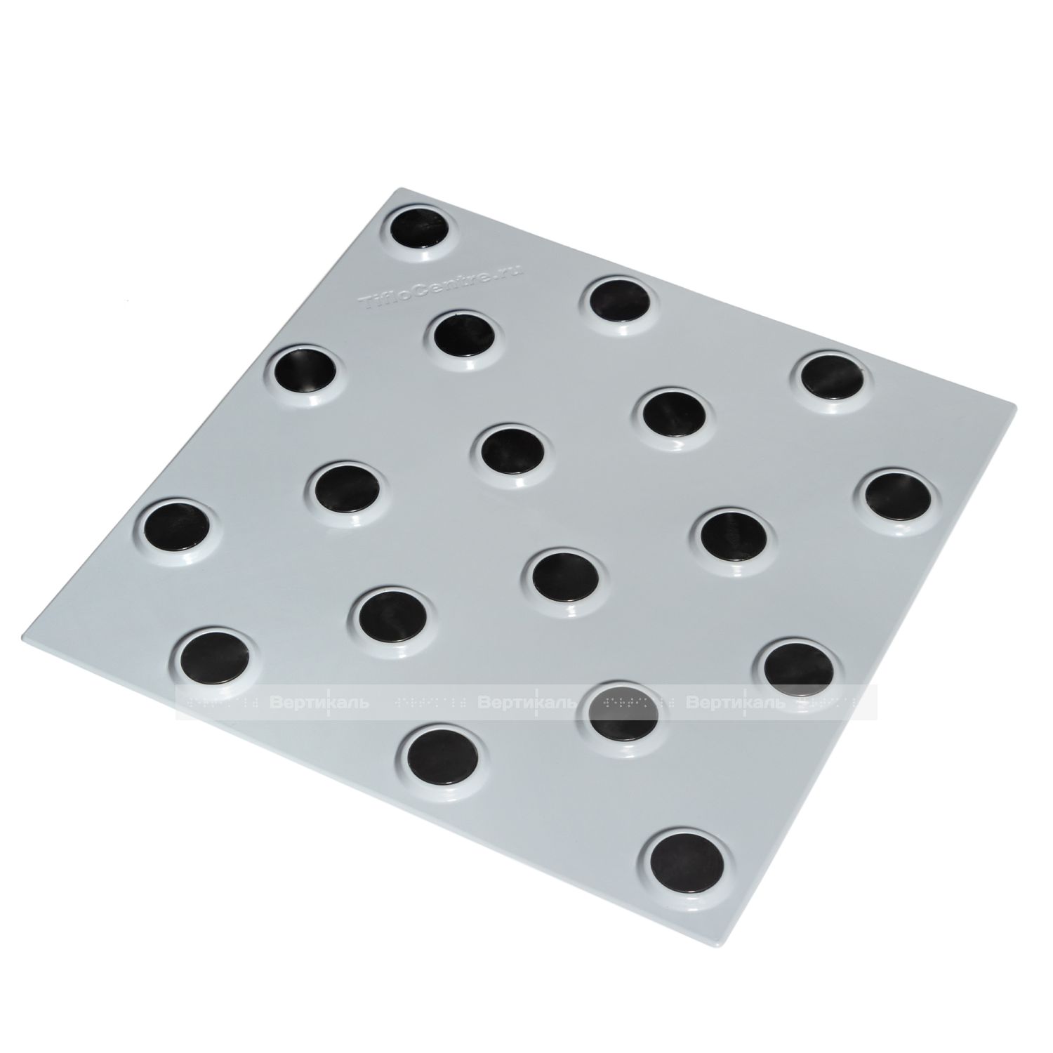 Плитка тактильная контрастная, со сменными гладкими вставками (непреодолимое препятствие, конусы шахматные), 300х300х6, PU/PL, серый/черный