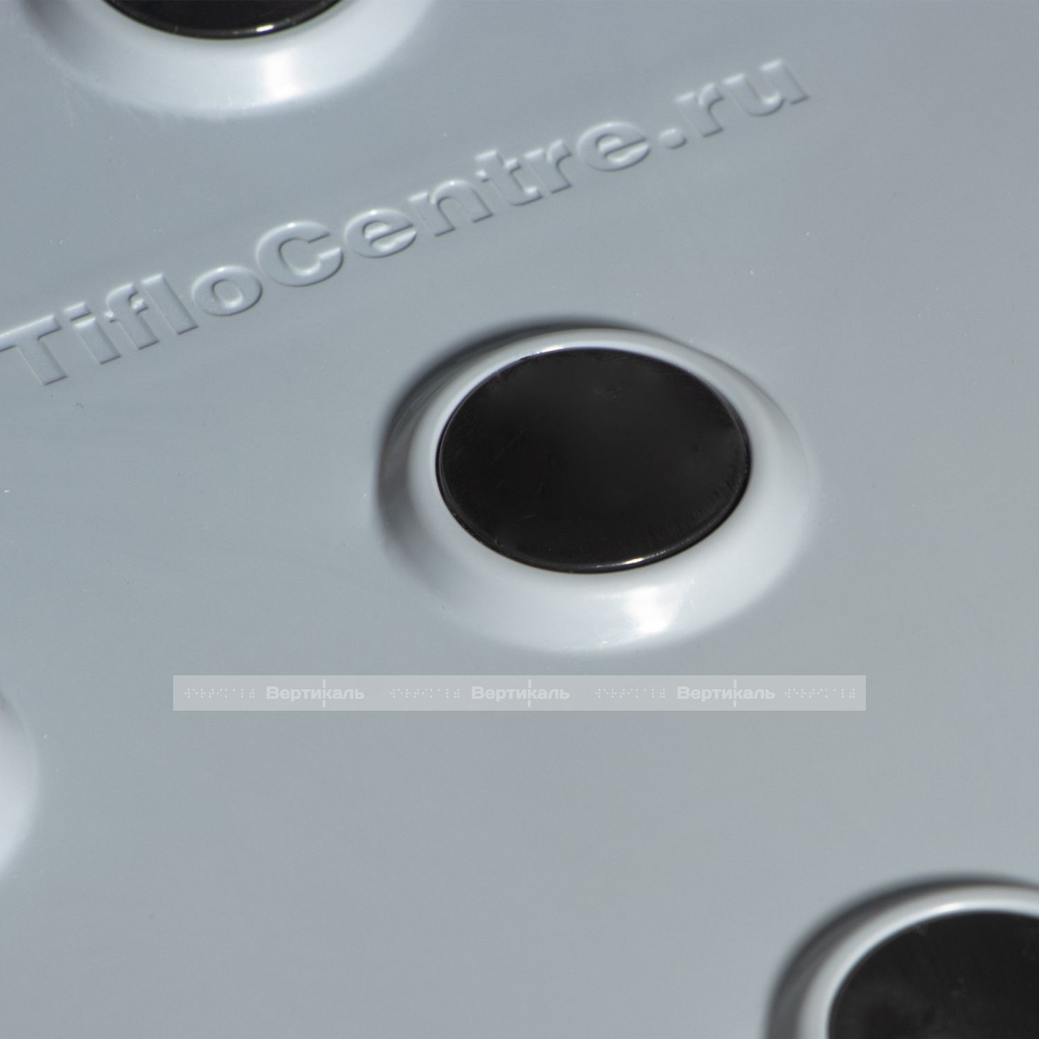 Тифлоцентр «Вертикаль» разработал и вывел на производственный уровень инновационную тактильную продукцию, полностью отвечающую нормативным требованиям ГОСТ Р 52875-2018 «Указатели тактильные наземные для инвалидов по зрению». Тактильный наземный указатель серого цвета имеет полиуретановое основание с черными гладкими сменными вставками из полистирола и предназначен для укладки внутри и снаружи помещений с большим потоком посетителей.