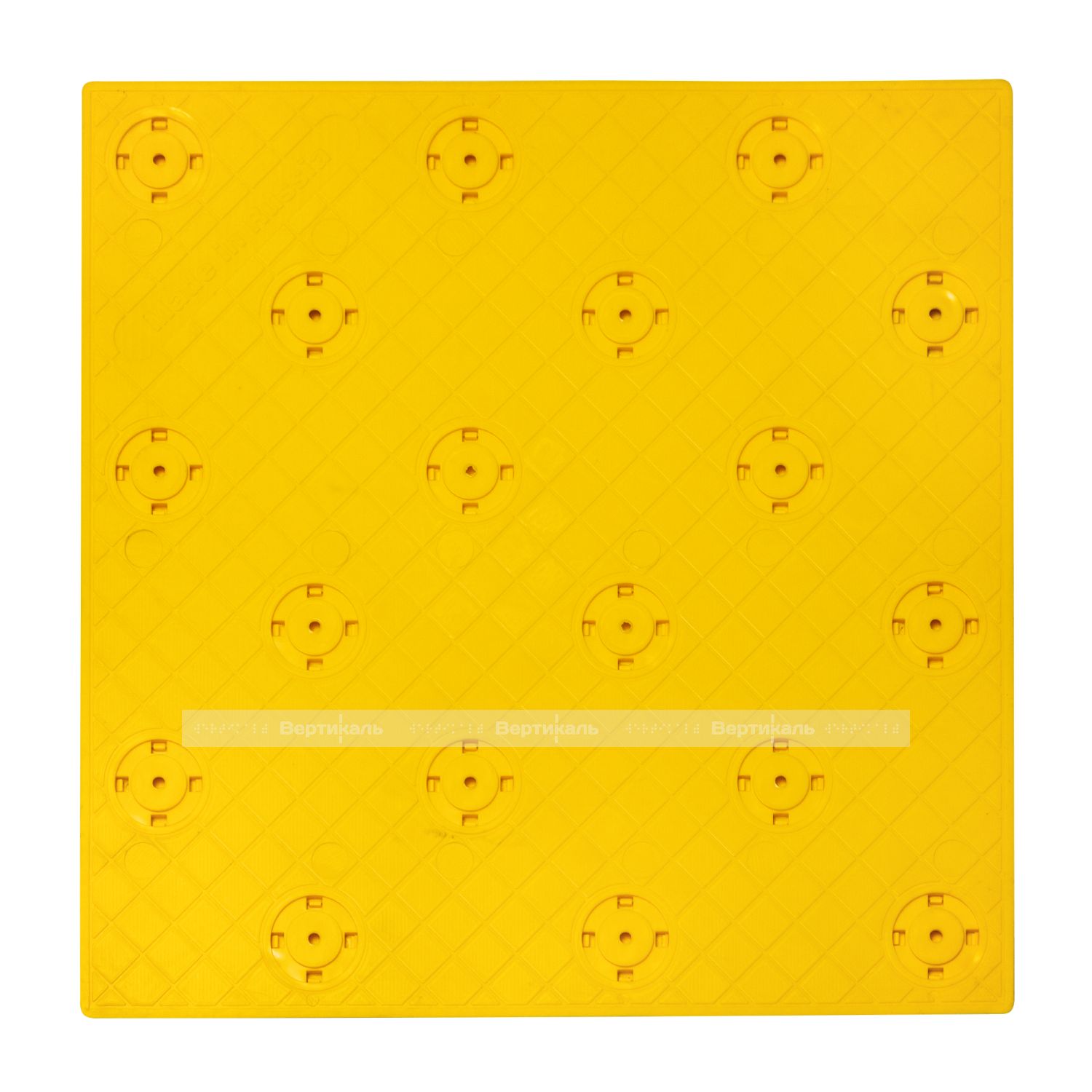Плитка тактильная контрастная, со сменными гладкими вставками (непреодолимое препятствие, конусы шахматные), 300х300х6, PU/PL, желтый/желтый