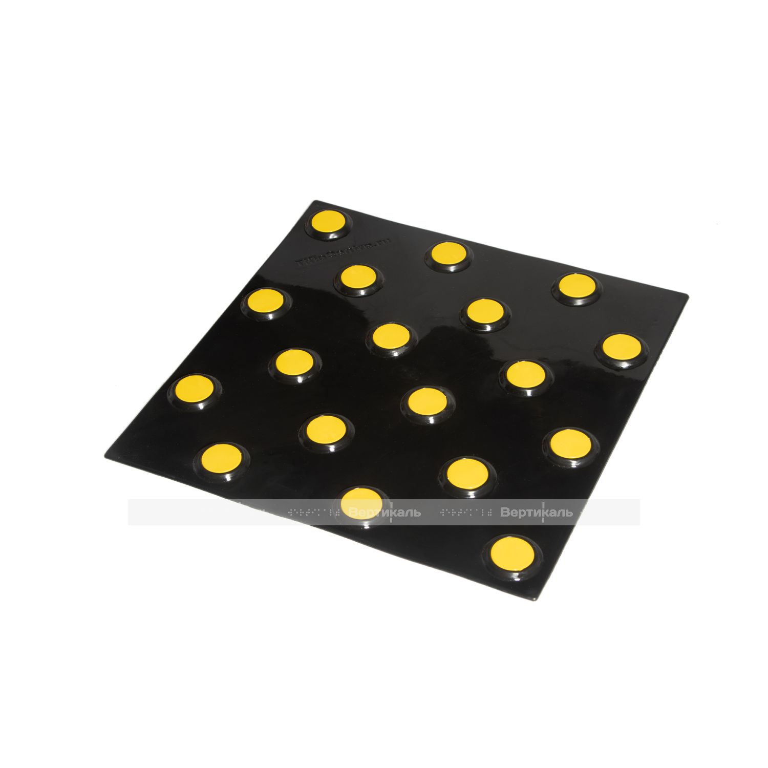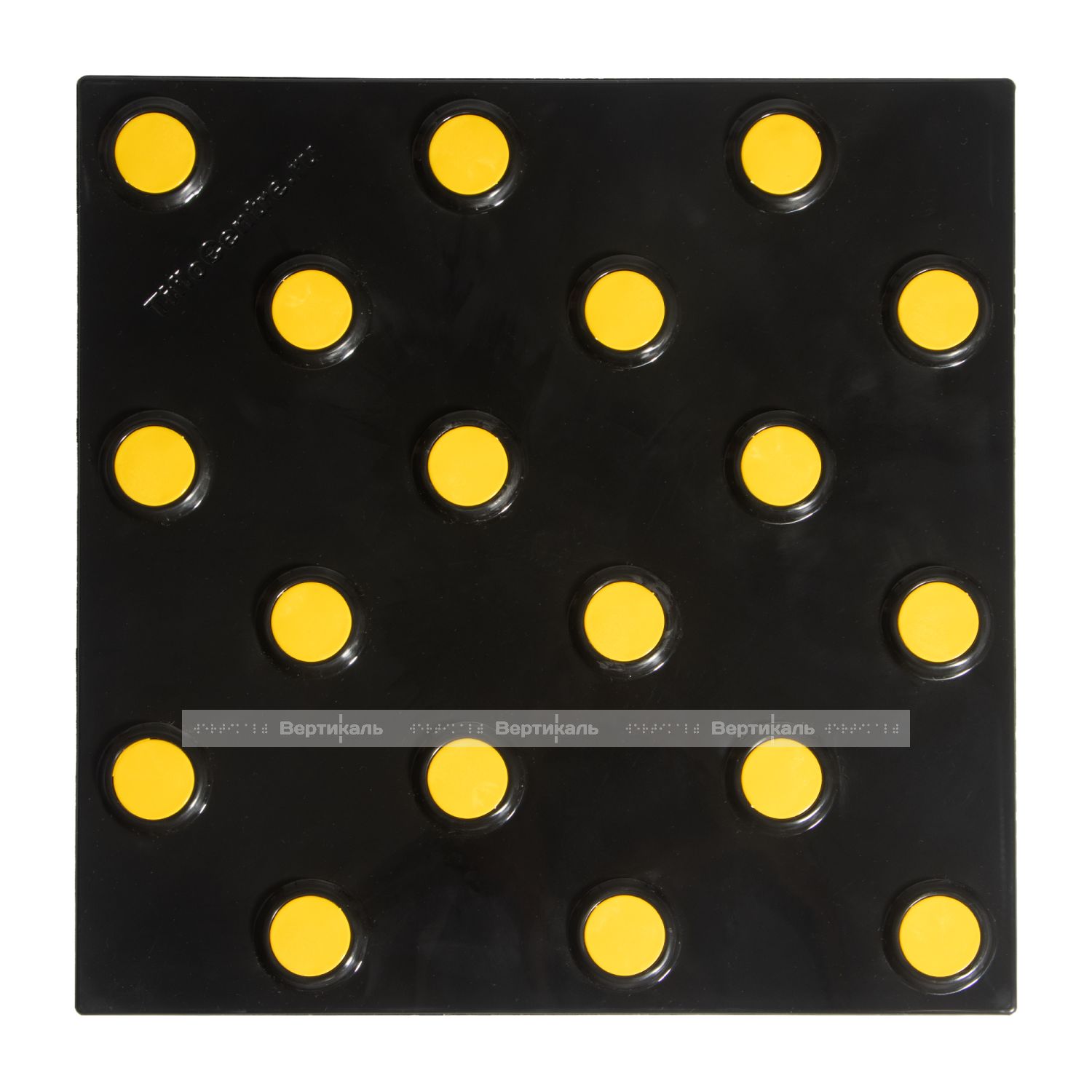Плитка тактильная контрастная, со сменными гладкими вставками (непреодолимое препятствие, конусы шахматные), 300х300х6, PU/PL, ч/ж, самоклей