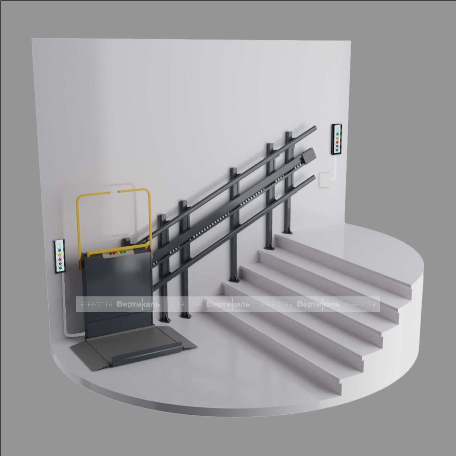 Современный наклонный подъемник для людей с ограниченными возможностями передвижения, предназначенный для безопасного перемещения по лестничным маршам и наклонным участкам. Соответствует ГОСТ Р 55556‑2013, обеспечивая нормативные требования к скорости, грузоподъемности и безопасности эксплуатации.
