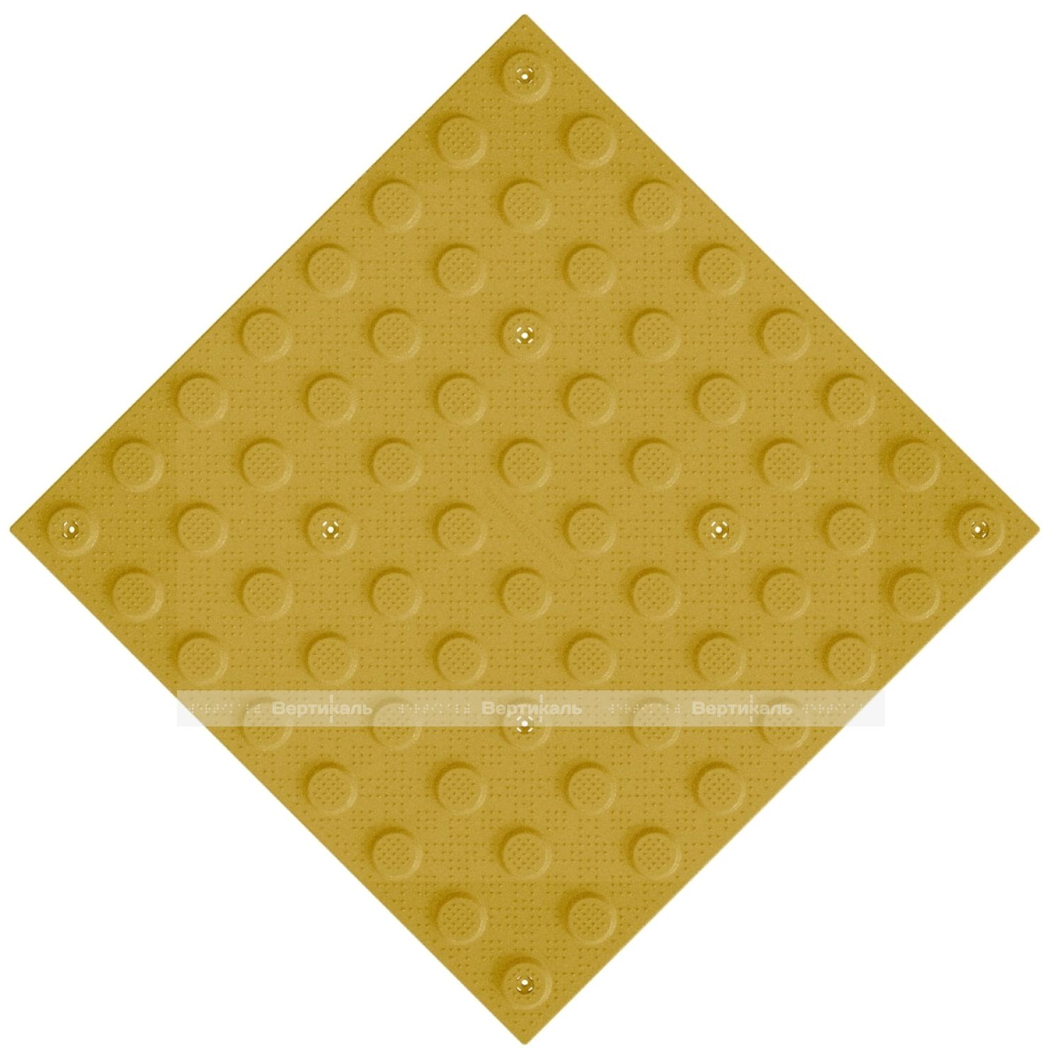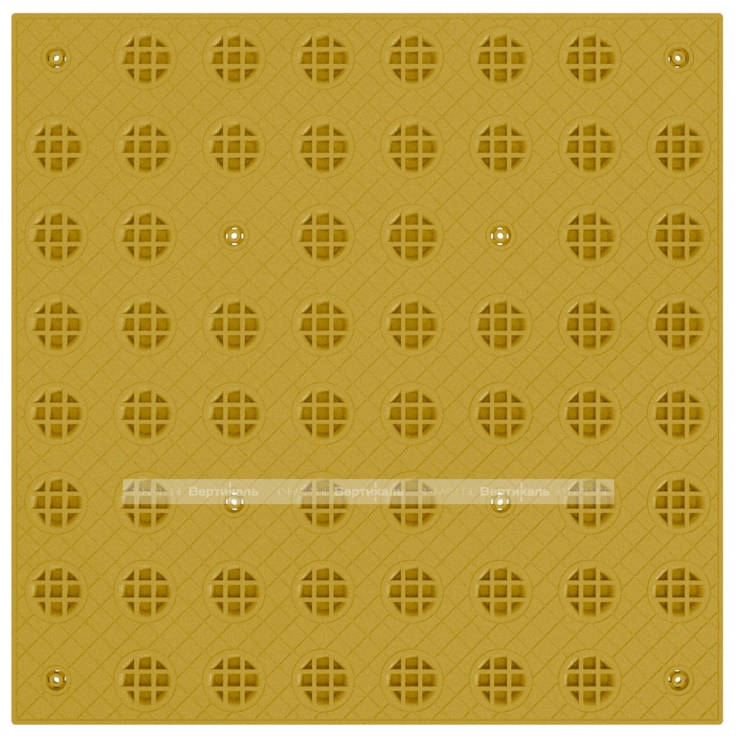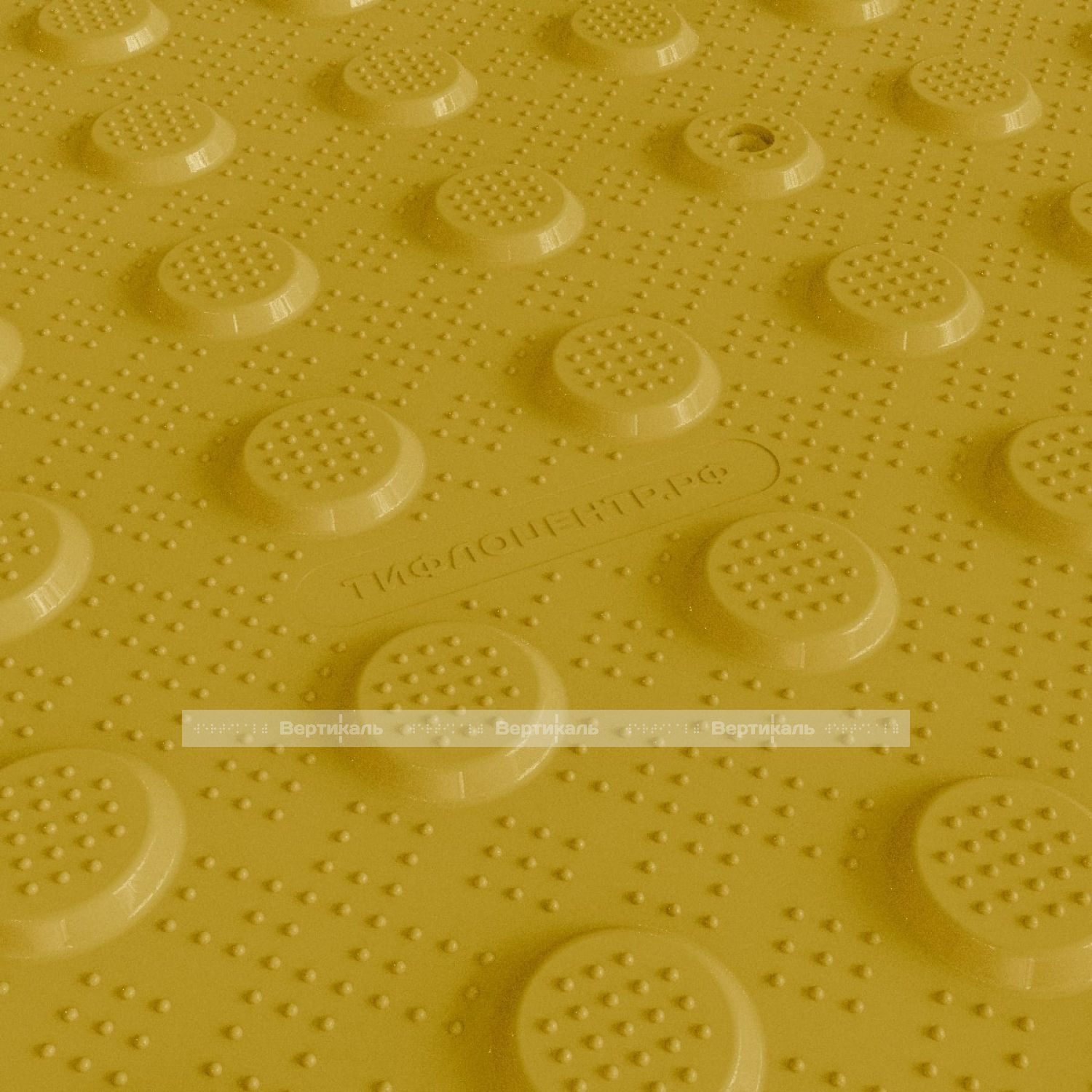 Плитка тактильная (преодолимое препятствие, поле внимания, конусы линейные) противоскользящая, 500х500х5, ПВХ, желтый