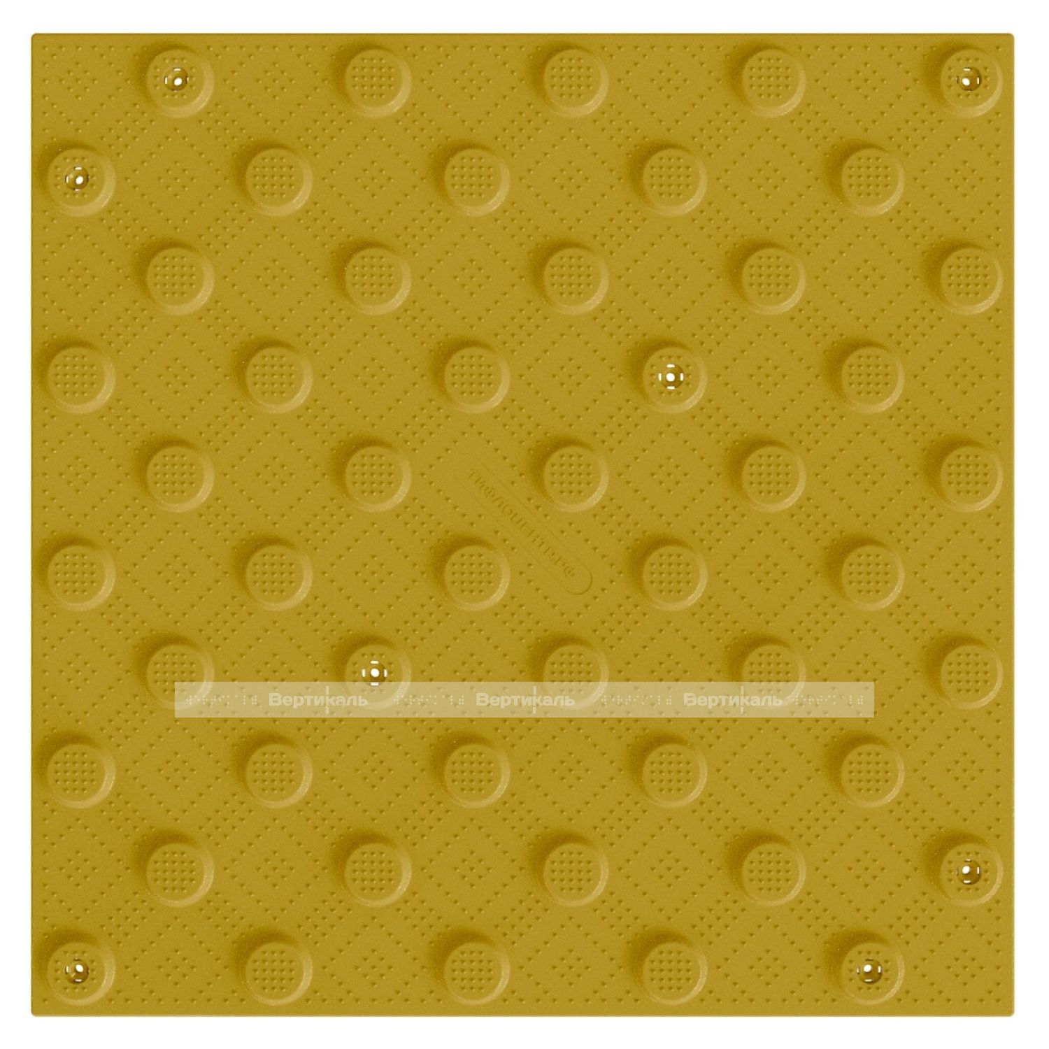 Плитка тактильная (непреодолимое препятствие, конусы шахматные) противоскользящая, 500х500х5, ПВХ, желтый