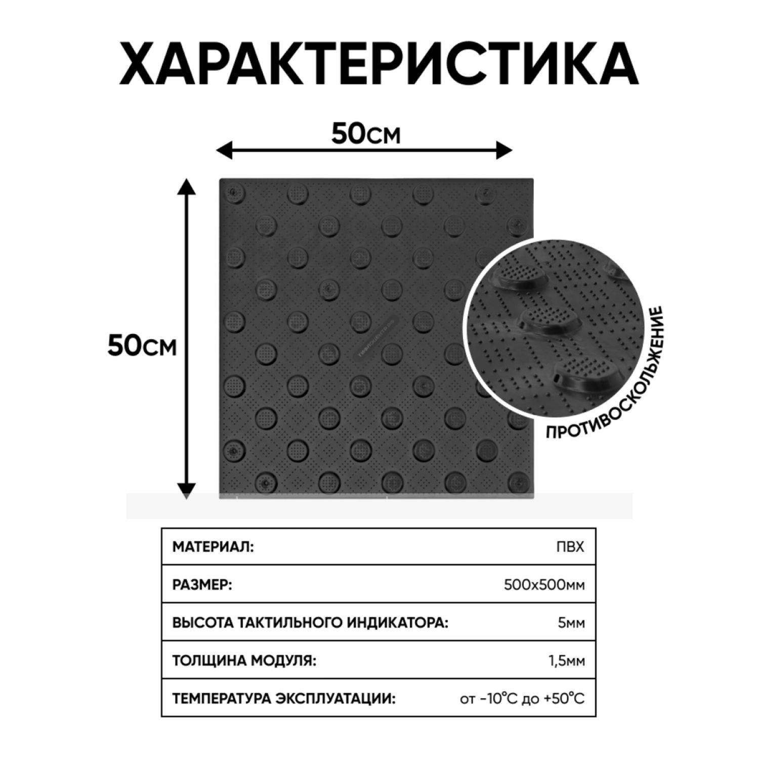 Плитка тактильная (непреодолимое препятствие, конусы шахматные) противоскользящая, 500х500х5, ПВХ, черный