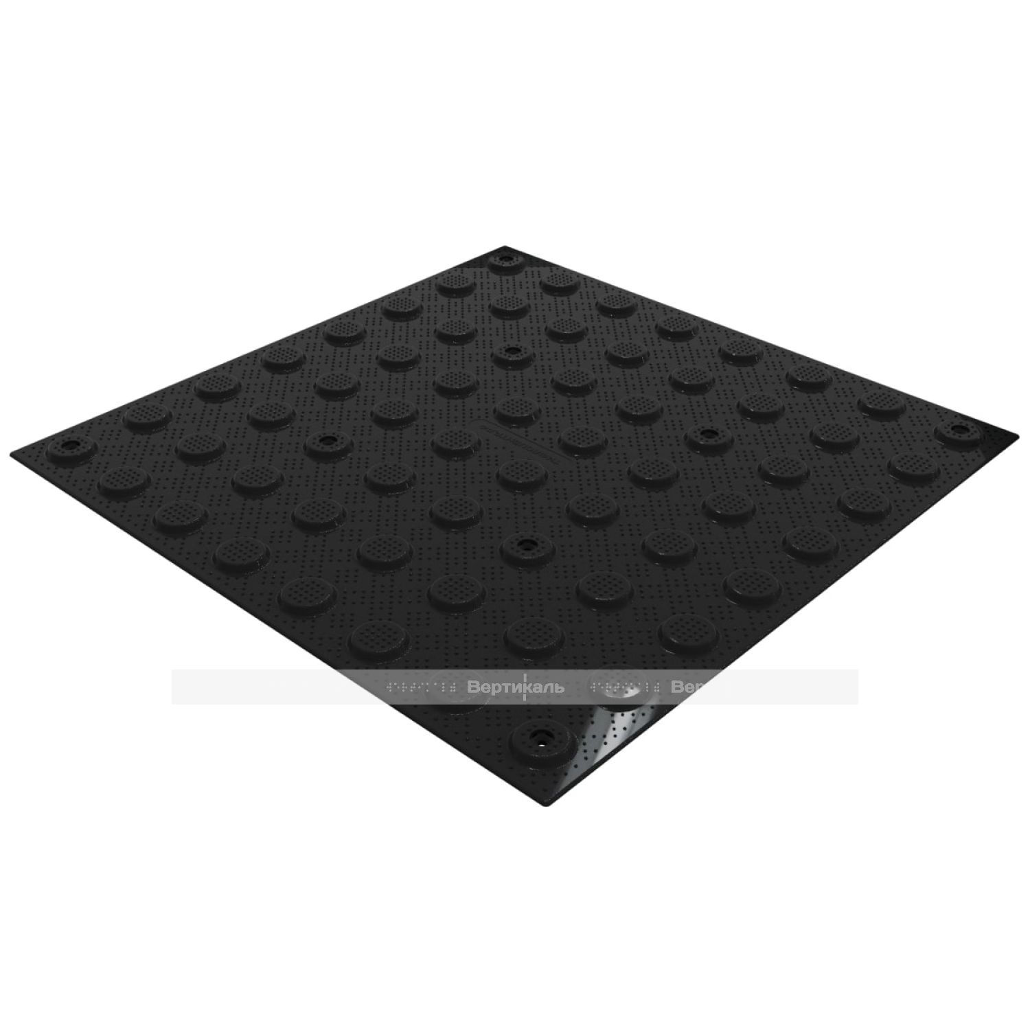 Плитка тактильная (преодолимое препятствие, поле внимания, конусы линейные) противоскользящая, 500х500х5, ПВХ, черный