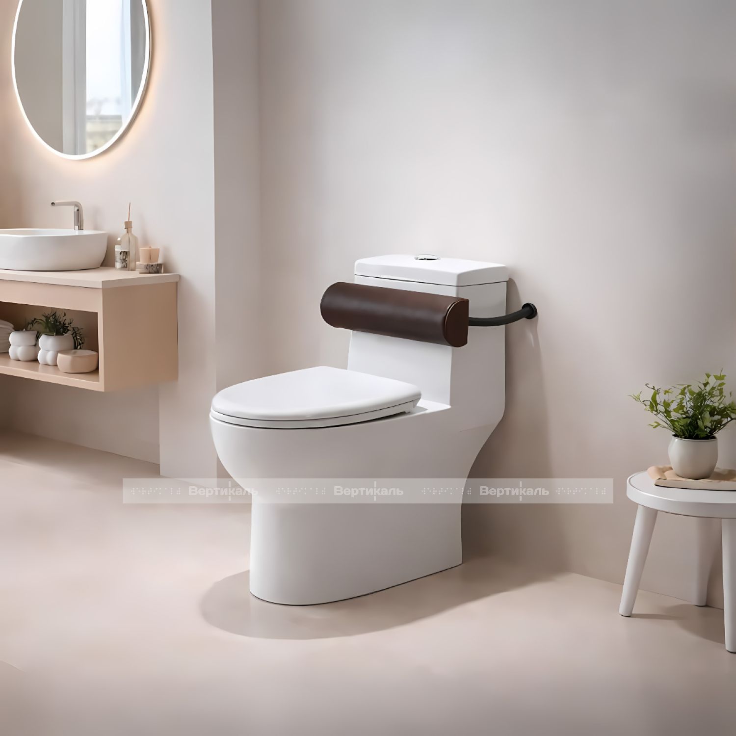 - Цветовое исполнение: поручень — черный; подушка — тёмно-коричневая, гармонично сочетающиеся с современными интерьерами санитарных помещений.