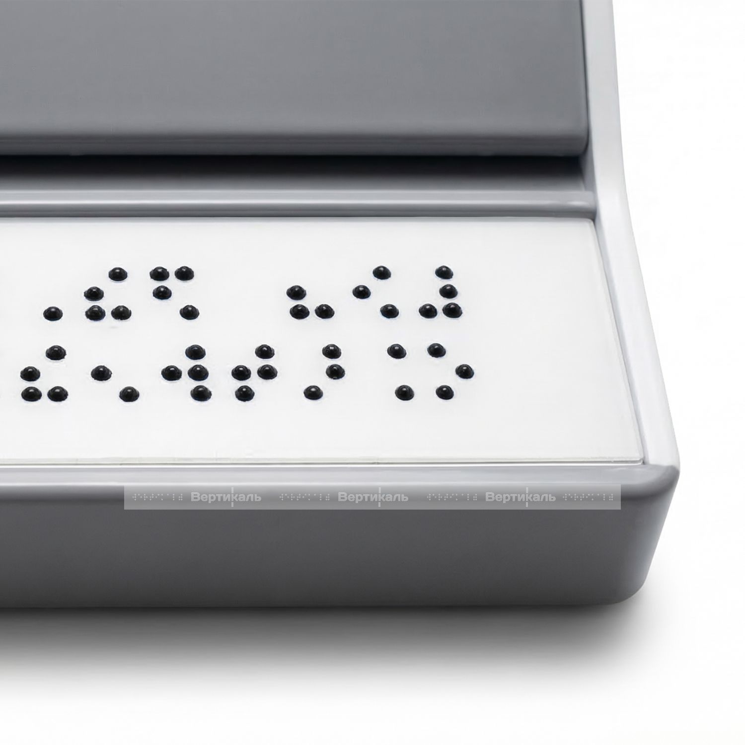 Тактильный указатель имеет приподнятый рельеф символов, высотой не менее 2 мм, что позволяет незрячим людям считывать информацию с максимальным комфортом.