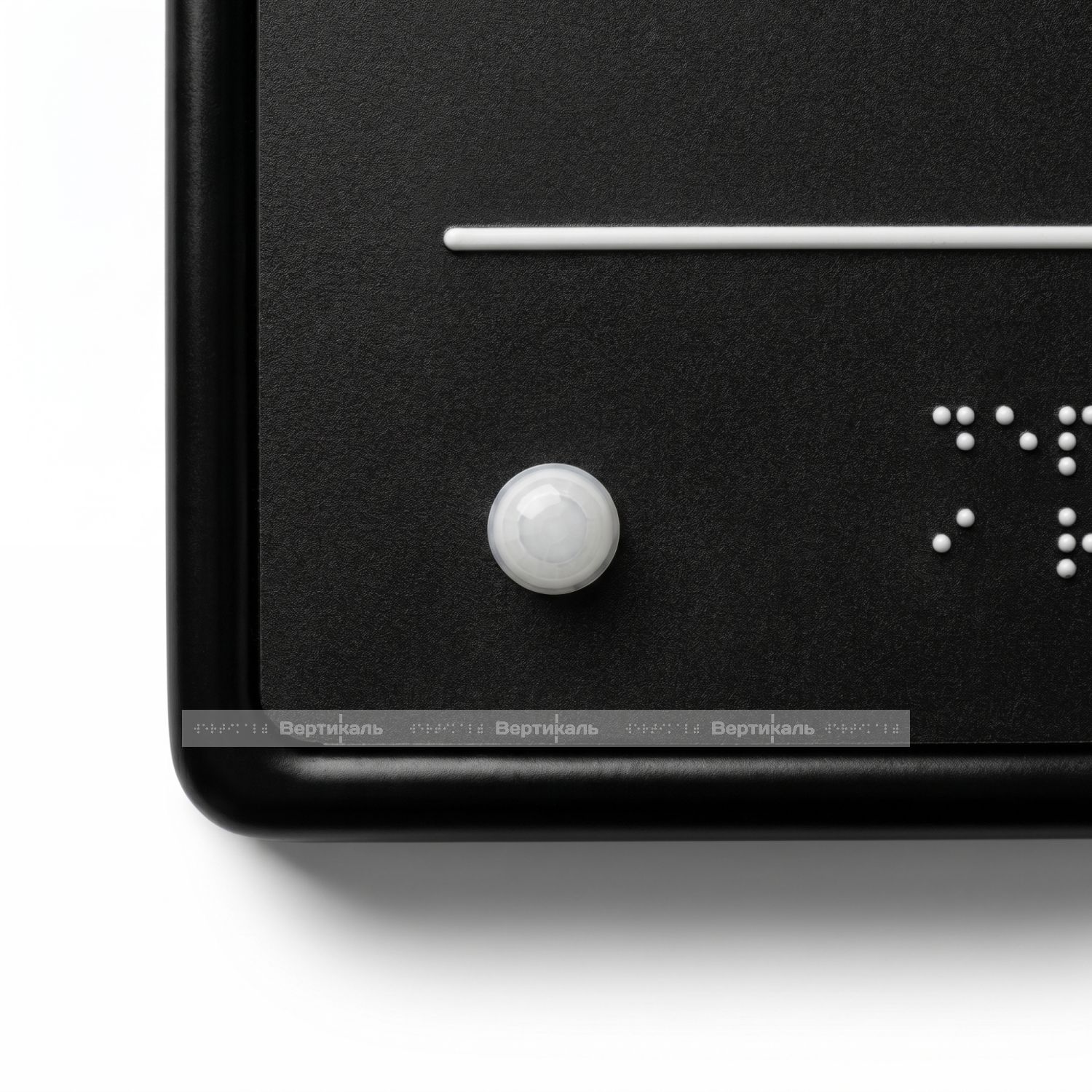 Табличка тактильно-звуковая комплексная, с датчиком движения, черного цвета, 150x300x25 мм