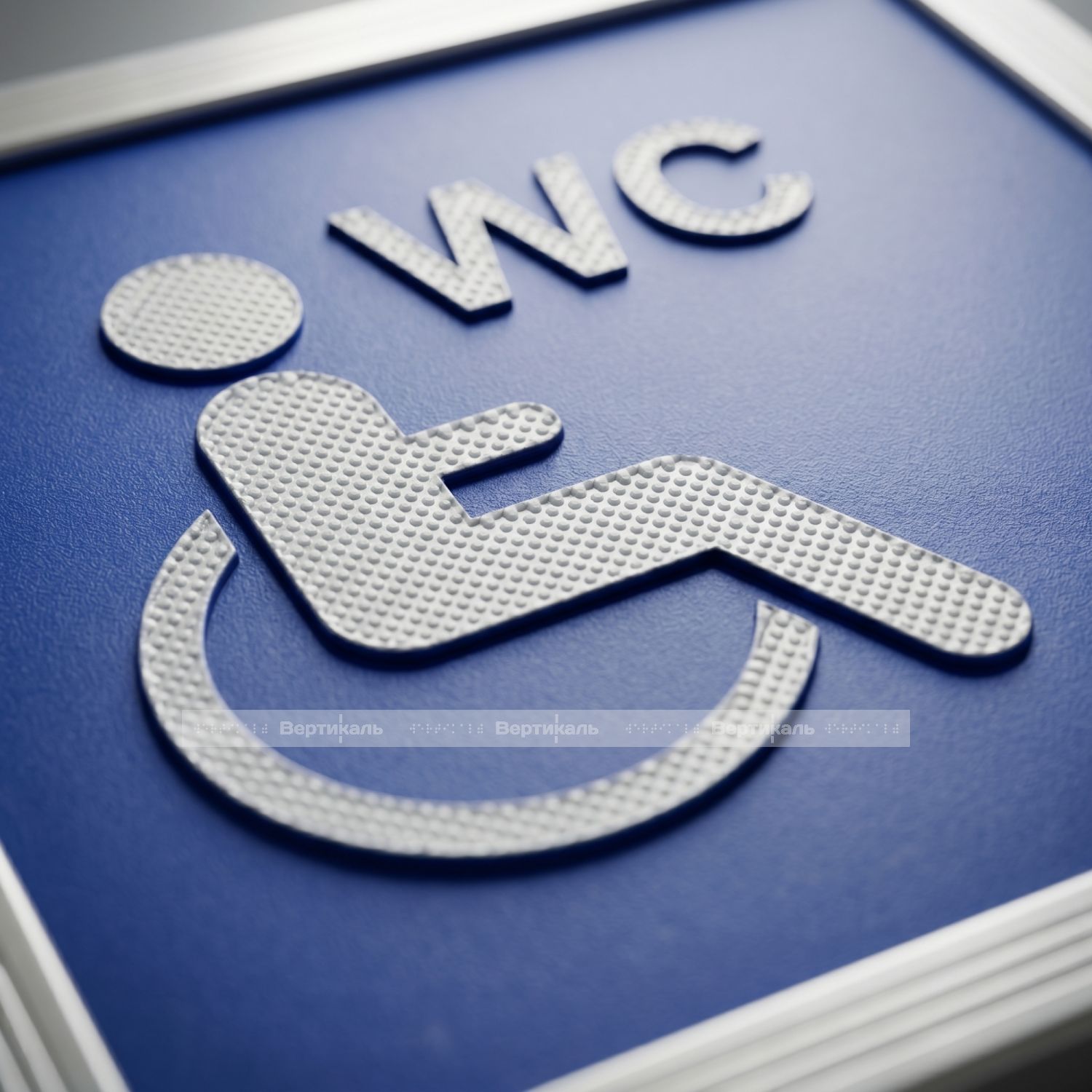 Модульная пиктограмма доступности с символическим изображением представляет собой информационный указатель, который передаёт информацию о доступности обособленного туалета для инвалидов на кресле-коляске. Указатель адаптирован к восприятию слабовидящими и тотально незрячими людьми.