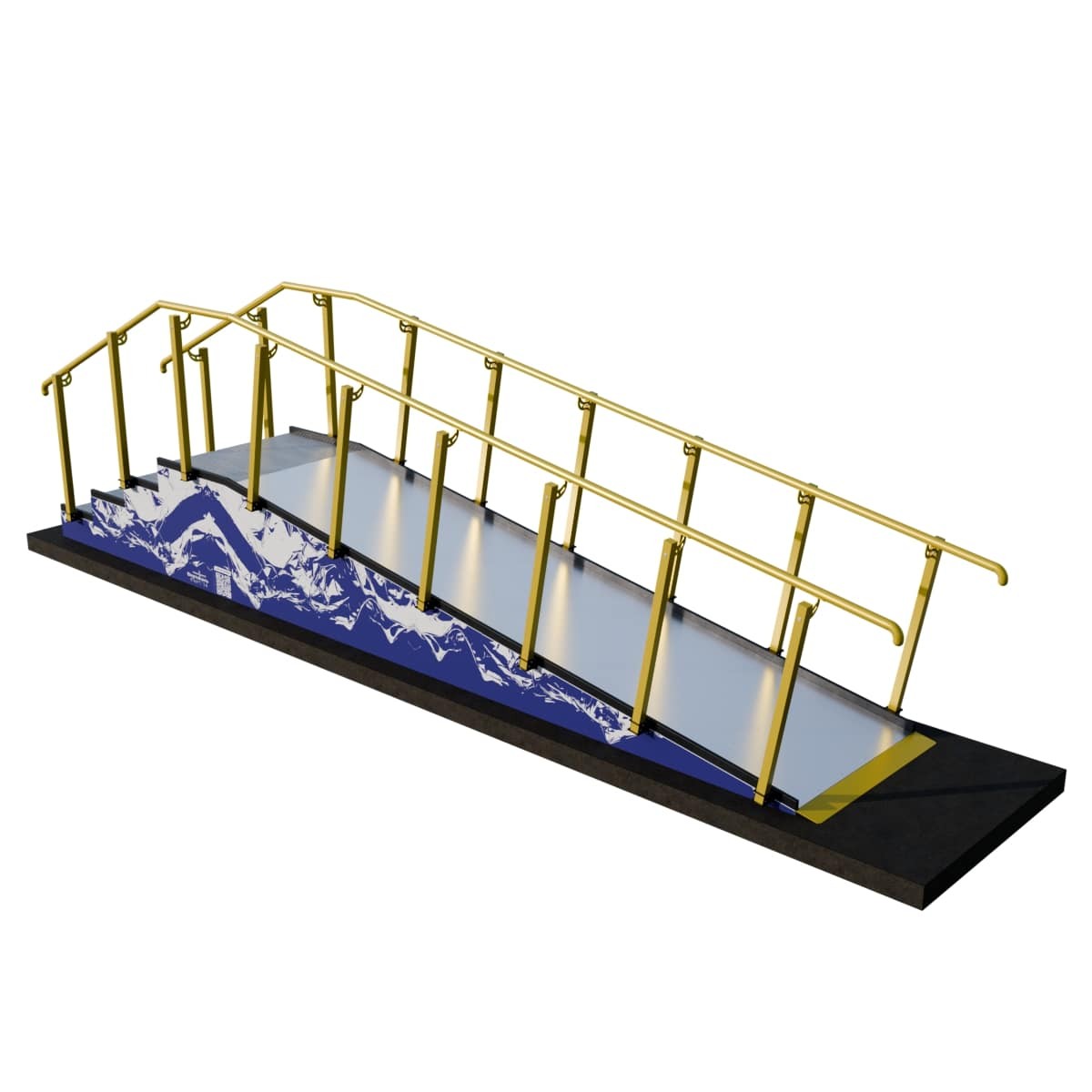 - Многофункциональностью: объединяет в себе лестничные секции с разной высотой ступеней и наклонный пандус, позволяя прорабатывать различные группы мышц и навыки