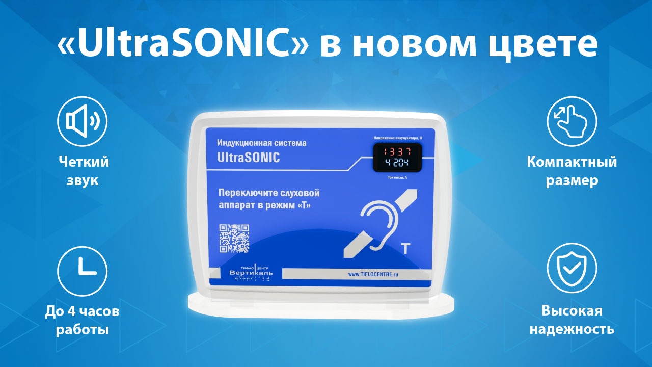 Тифлоцентр «Вертикаль» продолжает развивать линейку оборудования для создания доступной среды и рад представить обновленную версию популярной индукционной системы – портативную индукционную петлю «UltraSonic» в стильном синем исполнении.