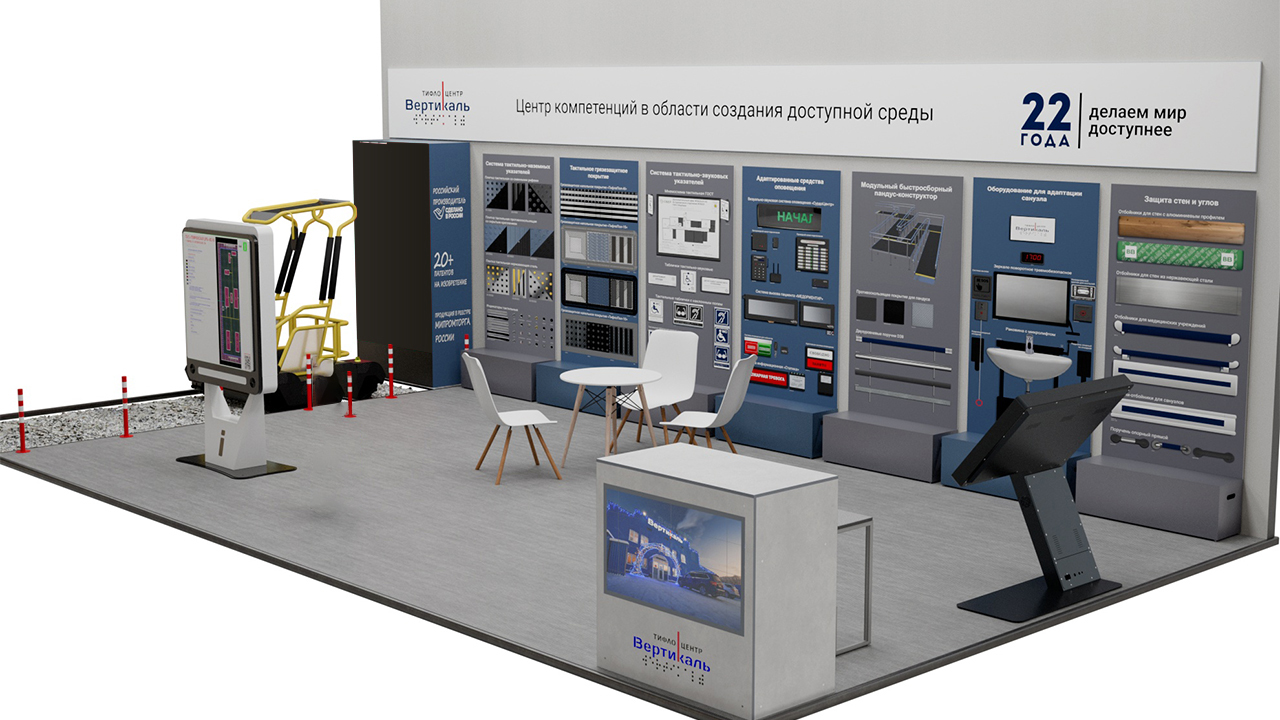 Экспозиция Тифлоцентра «Вертикаль» будет построена вокруг идеи гармоничного встраивания адаптивного оборудования в любые архитектурные и дизайнерские решения. Компания отходит от стереотипного восприятия доступной среды как набора ярко-желтых элементов, демонстрируя премиальные материалы и сдержанную цветовую гамму.