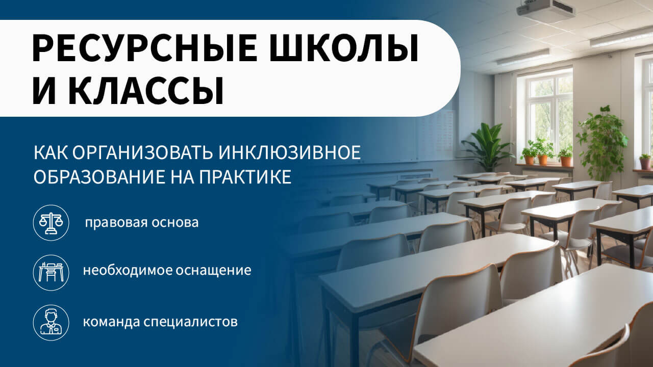 Ресурсная школа – это образовательное учреждение, которое концентрирует материально-технические, методические и кадровые ресурсы для обеспечения качественного обучения детей с разными образовательными потребностями. Проект «Ресурсная школа» реализуется в России с 2015 года и нацелен на создание условий для получения полноценного образования детьми с инвалидностью в школах шаговой доступности.