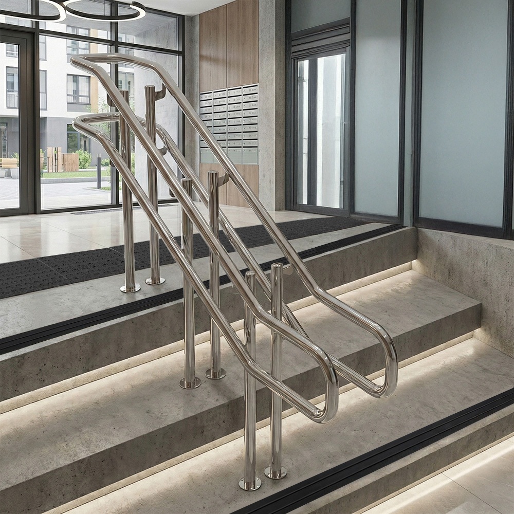 При выборе оборудования важно обращать внимание на соответствие материалов ГОСТам (например, ГОСТ 25772 для металлических ограждений). Поручни должны быть непрерывными, без острых краев, выдерживать нормативные нагрузки. Их интеграция в дизайн-проект на ранней стадии позволяет избежать переделок и обеспечить эстетичный вид.